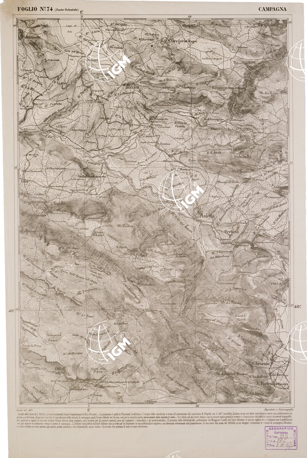 CARTA DELL’ ITALIA MERIDIONALE EDITA DALL’ISTITUTO TOPOGRAFICO MILITARE ITALIANO – Foglio 74 parte orientale – Campagna