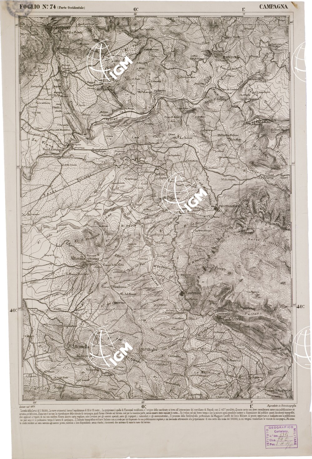 CARTA DELL' ITALIA MERIDIONALE EDITA DALL'ISTITUTO TOPOGRAFICO MILITARE ITALIANO – Foglio 74 parte occidentale – Campagna