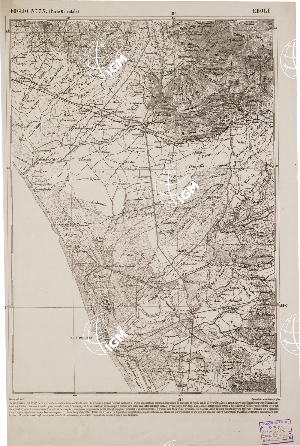 CARTA DELL' ITALIA MERIDIONALE EDITA DALL'ISTITUTO TOPOGRAFICO MILITARE ITALIANO – Foglio 73 parte orientale – Eboli