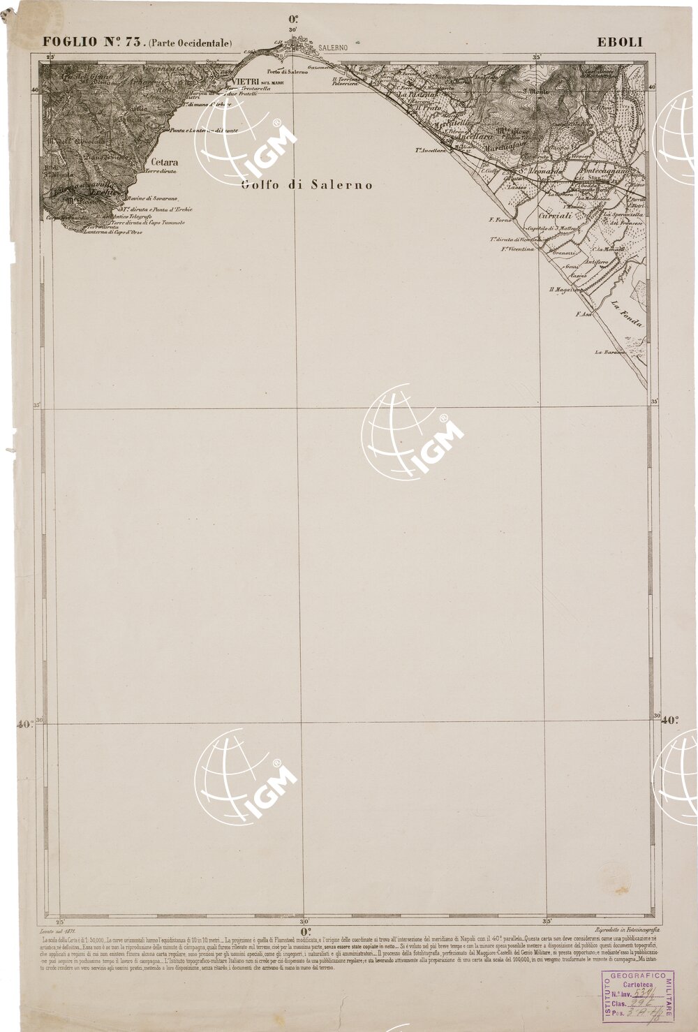 CARTA DELL' ITALIA MERIDIONALE EDITA DALL'ISTITUTO TOPOGRAFICO MILITARE ITALIANO – Foglio 73 parte occidentale – Eboli
