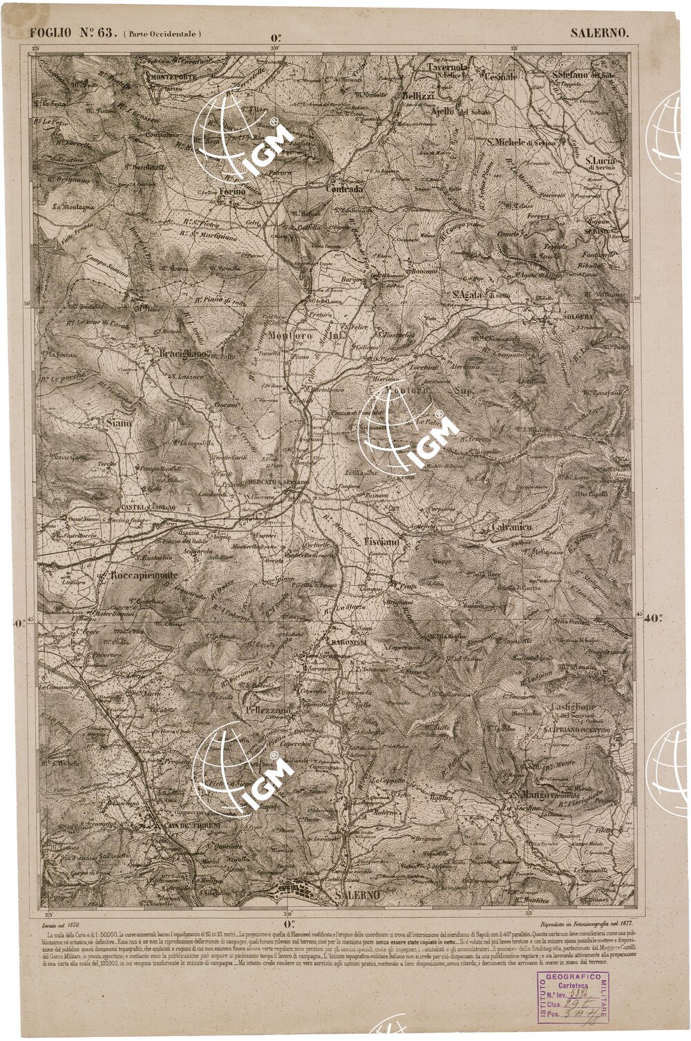 CARTA DELL' ITALIA MERIDIONALE EDITA DALL'ISTITUTO TOPOGRAFICO MILITARE ITALIANO – Foglio 63 parte occidentale – Salerno