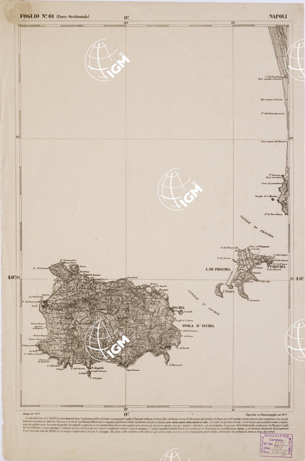 CARTA DELL’ ITALIA MERIDIONALE EDITA DALL’ISTITUTO TOPOGRAFICO MILITARE ITALIANO – Foglio 61 parte occidentale – Napoli