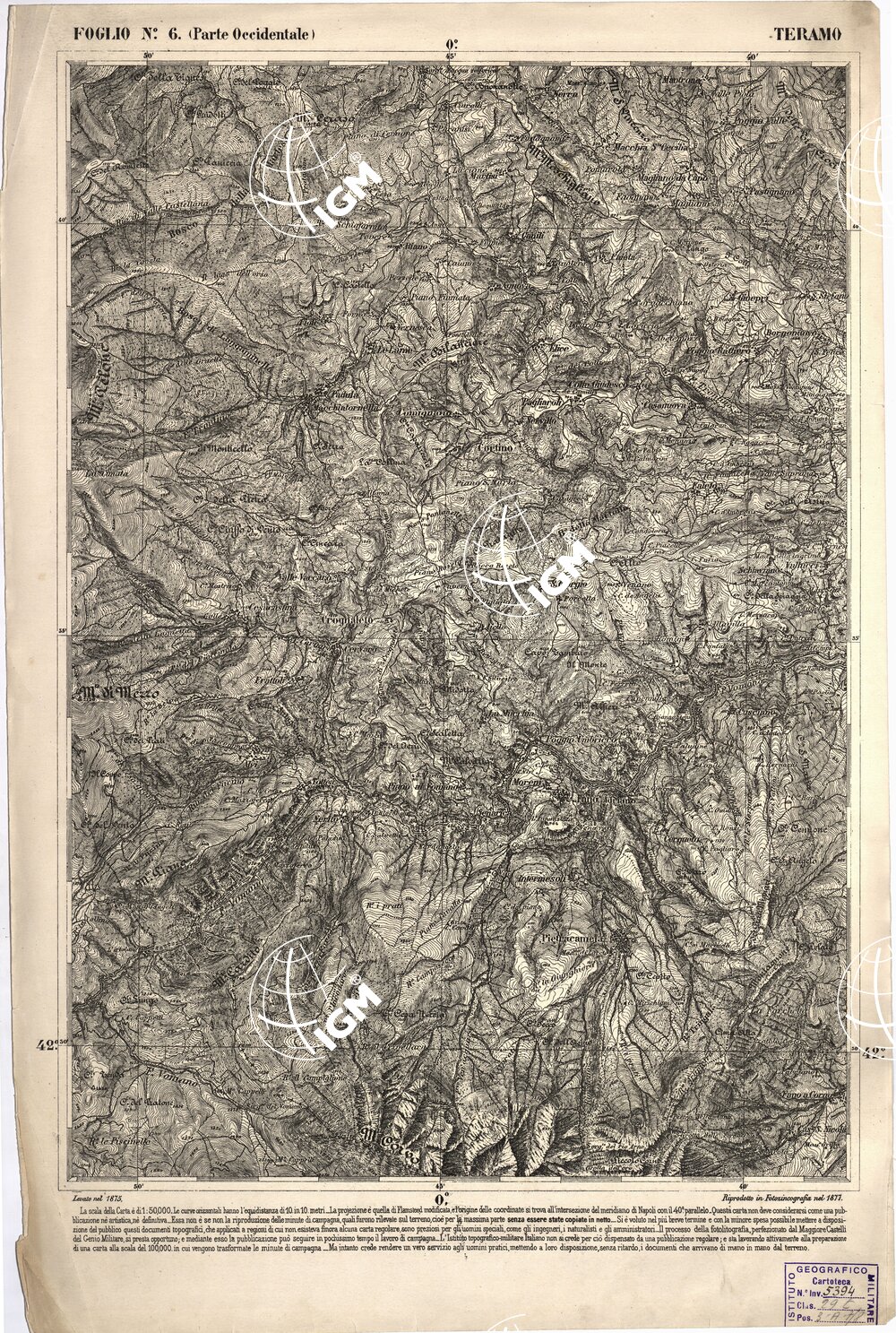 CARTA DELL' ITALIA MERIDIONALE EDITA DALL'ISTITUTO TOPOGRAFICO MILITARE ITALIANO – Foglio 6 parte occidentale – Teramo