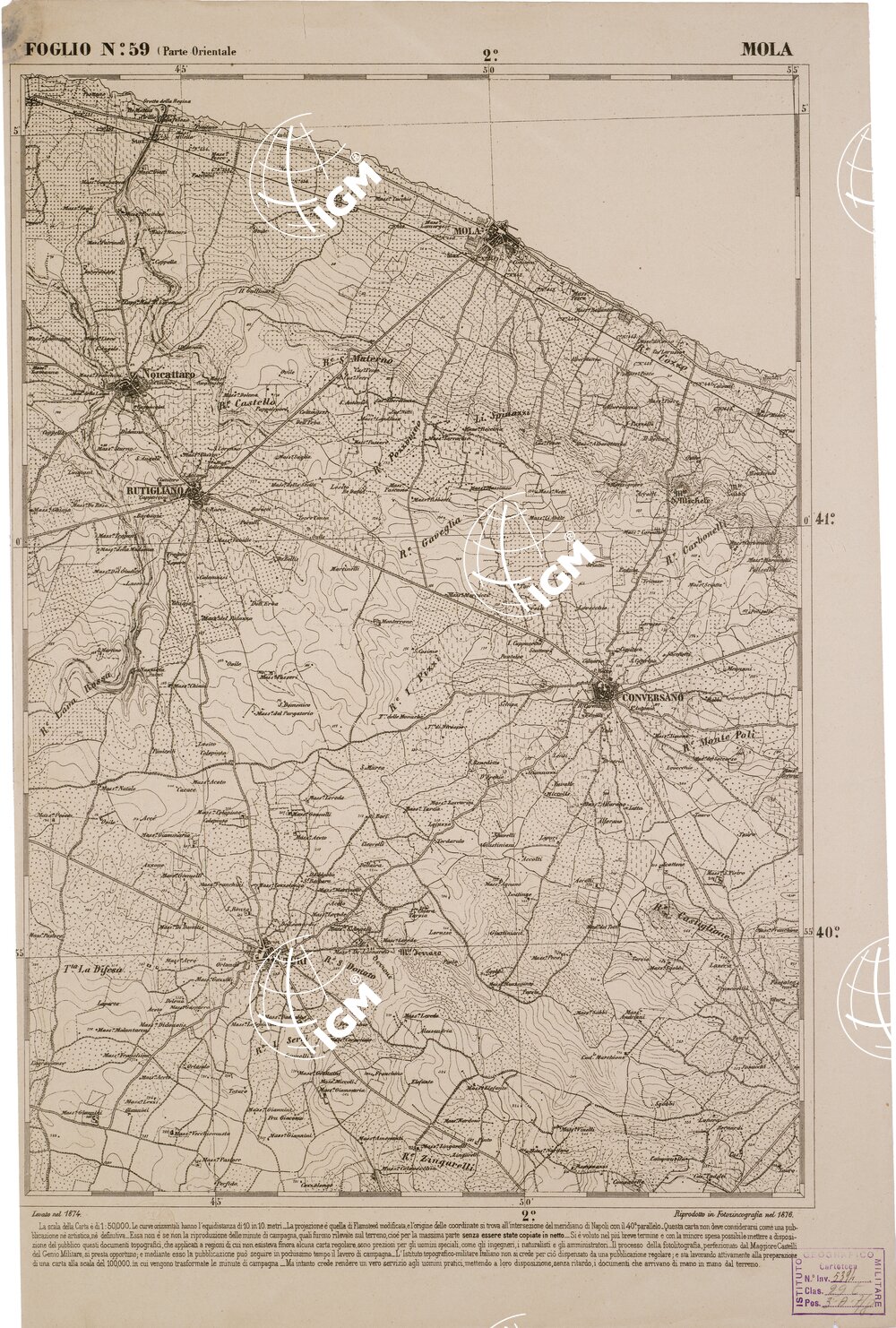 CARTA DELL’ ITALIA MERIDIONALE EDITA DALL’ISTITUTO TOPOGRAFICO MILITARE ITALIANO – Foglio 59 parte orientale – Mola