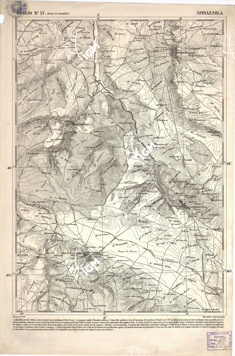 CARTA DELL’ ITALIA MERIDIONALE EDITA DALL’ISTITUTO TOPOGRAFICO MILITARE ITALIANO – Foglio 57 parte occidentale – Spinazzola