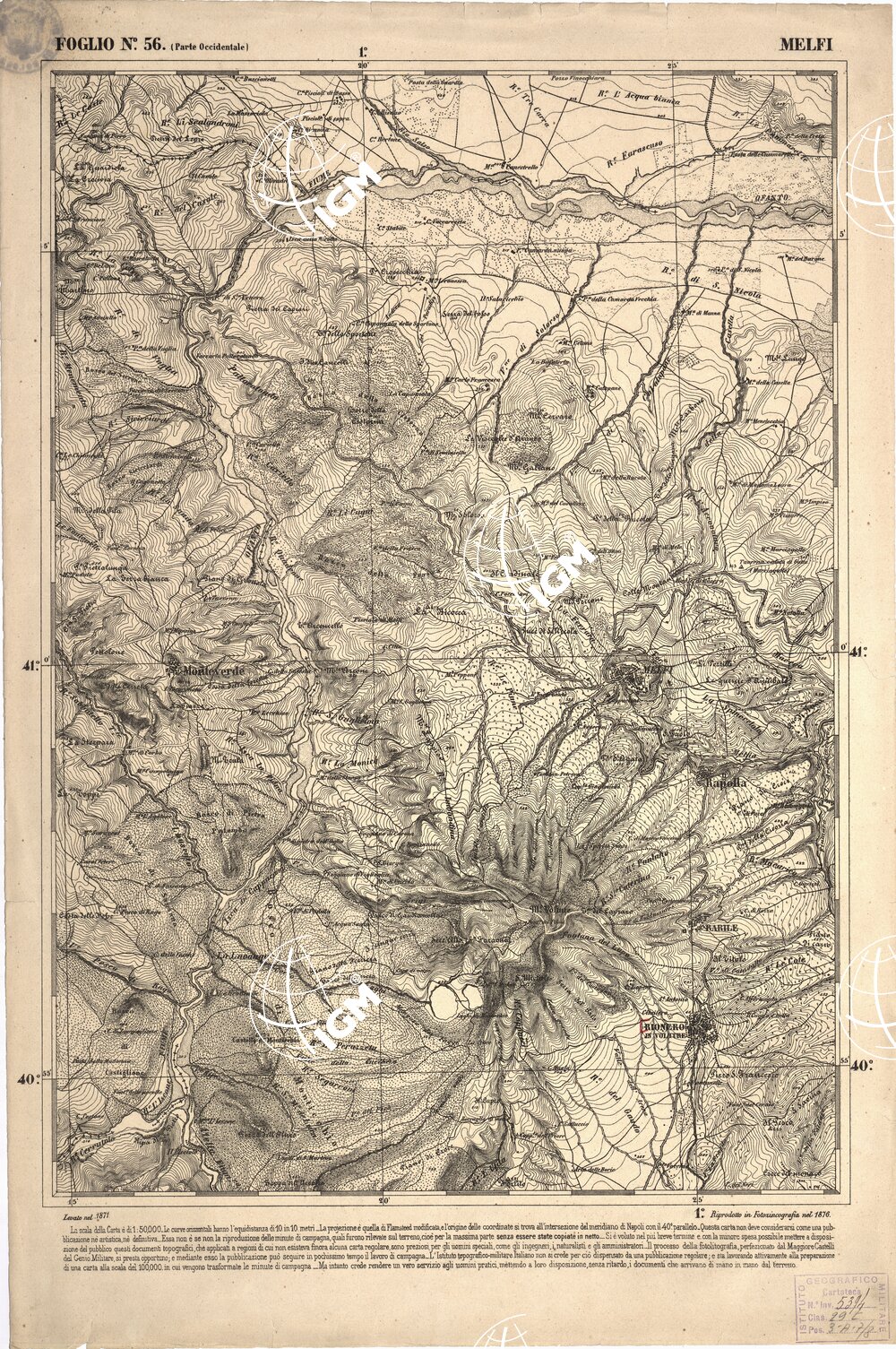 CARTA DELL' ITALIA MERIDIONALE EDITA DALL'ISTITUTO TOPOGRAFICO MILITARE ITALIANO – Foglio 56 parte occidentale – Melfi