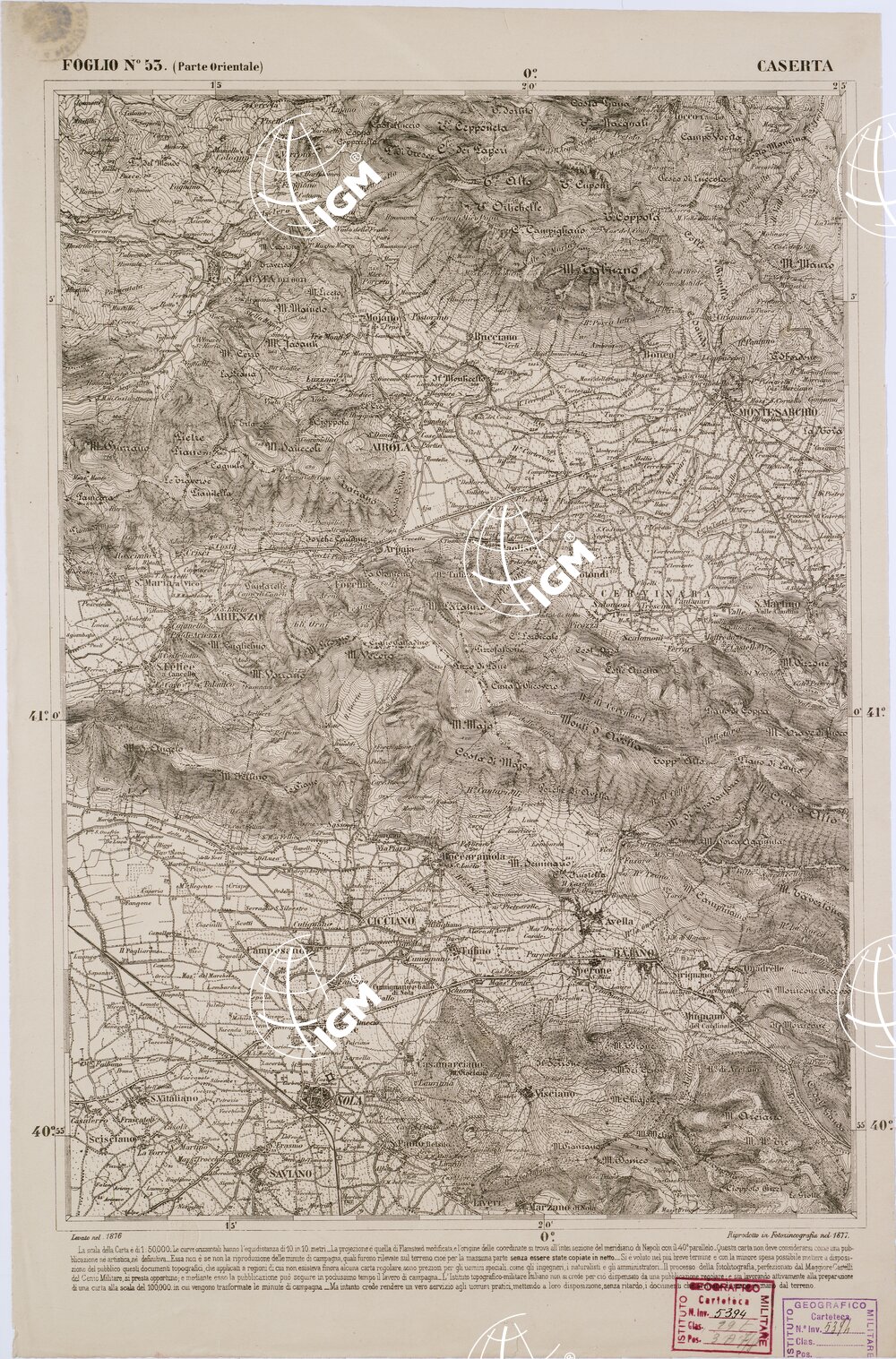 CARTA DELL' ITALIA MERIDIONALE EDITA DALL'ISTITUTO TOPOGRAFICO MILITARE ITALIANO – Foglio 53 parte orientale – Caserta