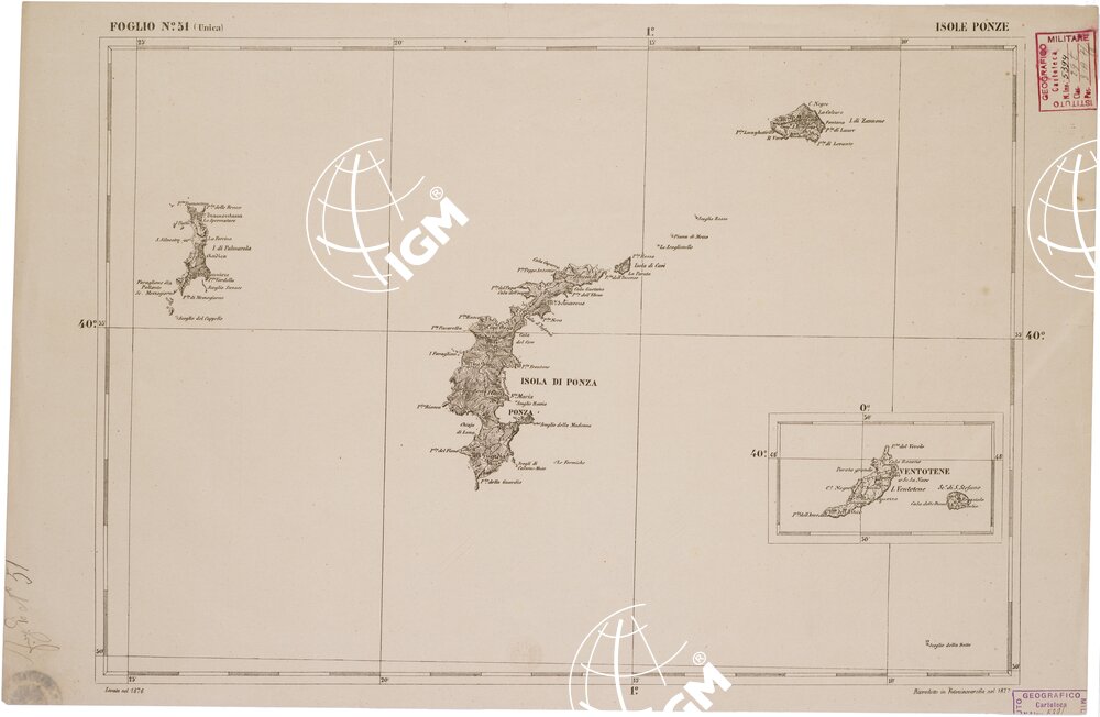 CARTA DELL' ITALIA MERIDIONALE EDITA DALL'ISTITUTO TOPOGRAFICO MILITARE ITALIANO – Foglio 51 – Isole Ponze