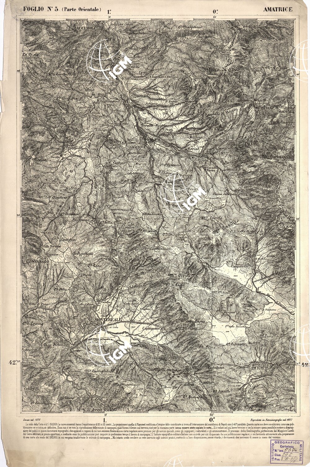 CARTA DELL' ITALIA MERIDIONALE EDITA DALL'ISTITUTO TOPOGRAFICO MILITARE ITALIANO – Foglio 5 parte orientale – Amatrice