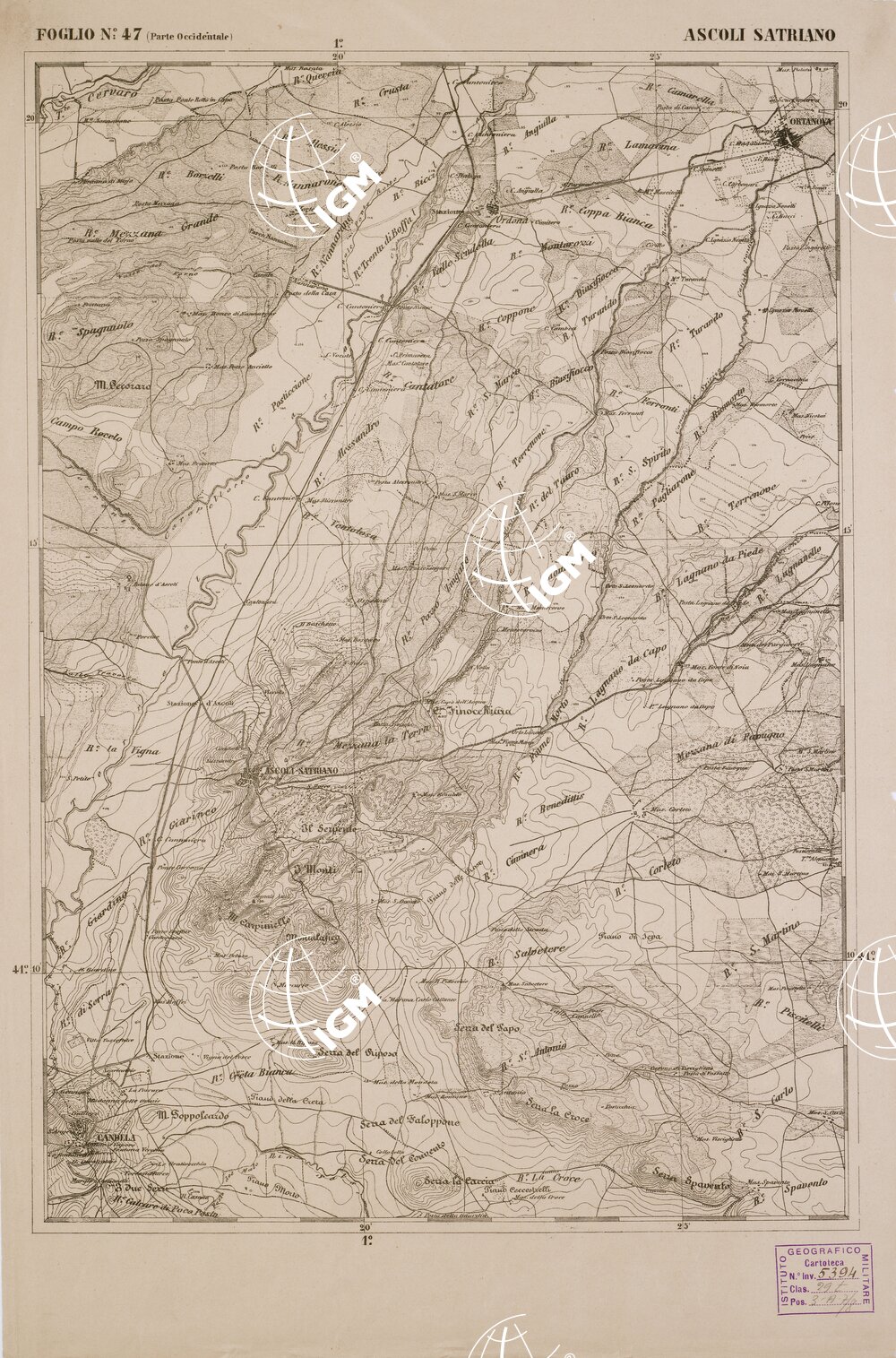 CARTA DELL' ITALIA MERIDIONALE EDITA DALL'ISTITUTO TOPOGRAFICO MILITARE ITALIANO – Foglio 47 parte occidentale – Ascoli Satriano