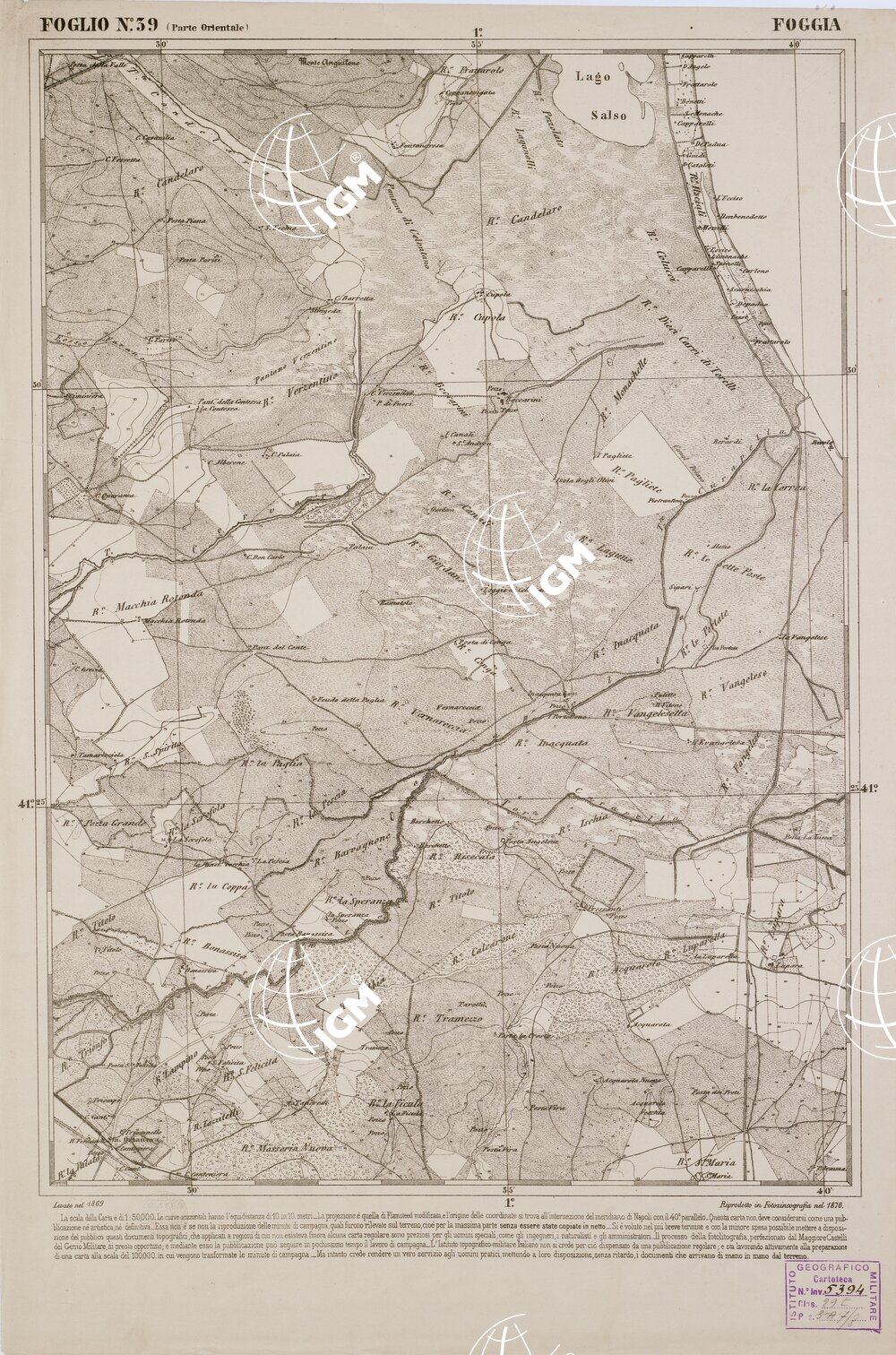 CARTA DELL' ITALIA MERIDIONALE EDITA DALL'ISTITUTO TOPOGRAFICO MILITARE ITALIANO – Foglio 39 parte orientale – Foggia