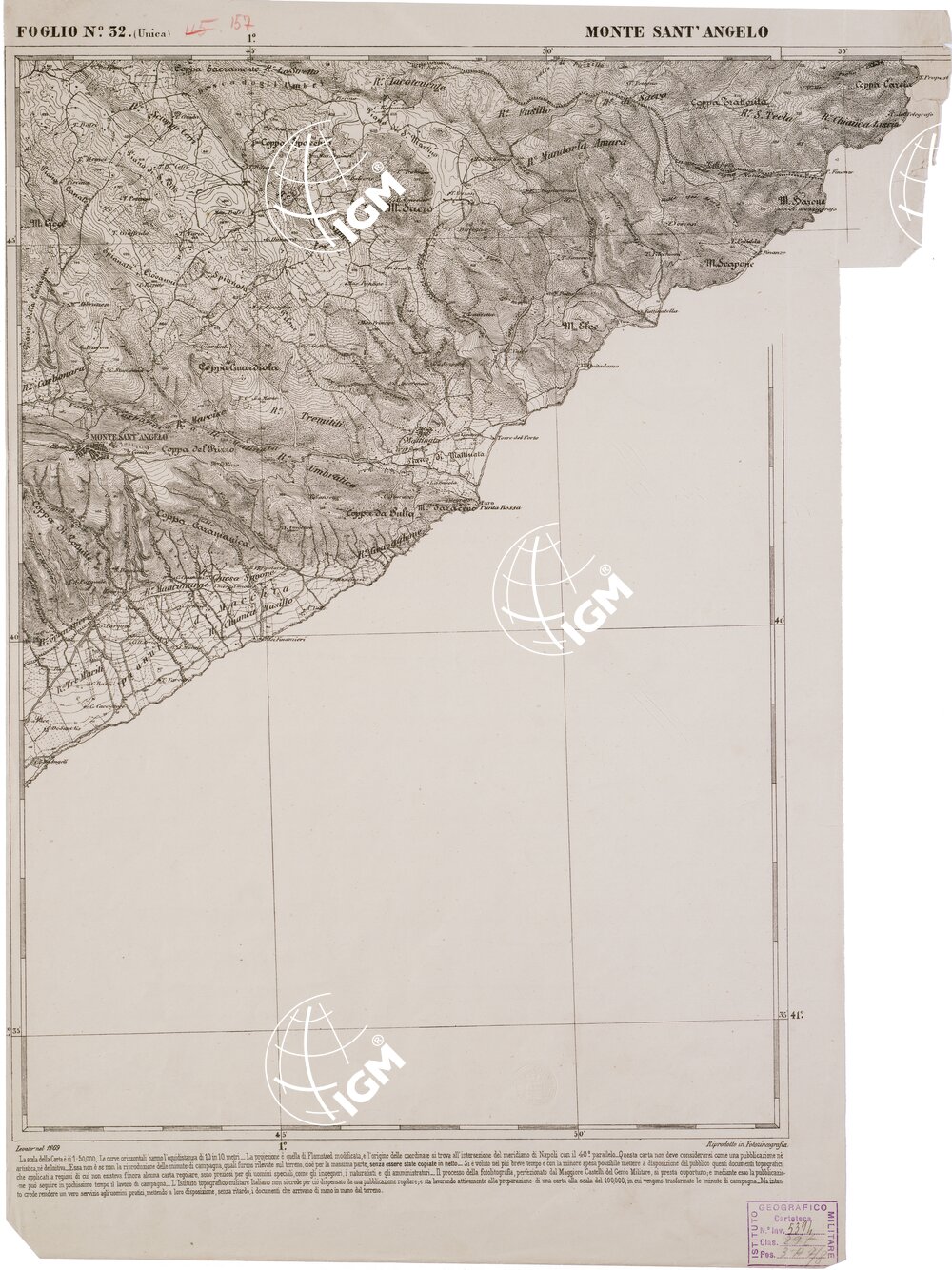 CARTA DELL' ITALIA MERIDIONALE EDITA DALL'ISTITUTO TOPOGRAFICO MILITARE ITALIANO – Foglio 32 – Monte Sant'Angelo