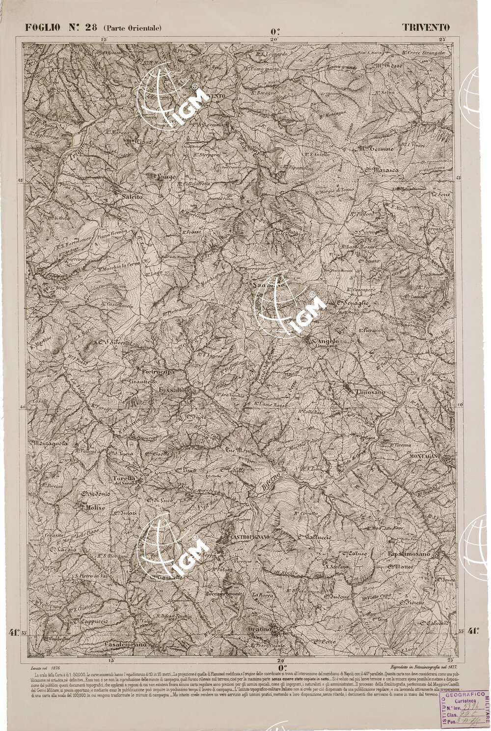 CARTA DELL’ ITALIA MERIDIONALE EDITA DALL’ISTITUTO TOPOGRAFICO MILITARE ITALIANO – Foglio 28 parte orientale – Trivento