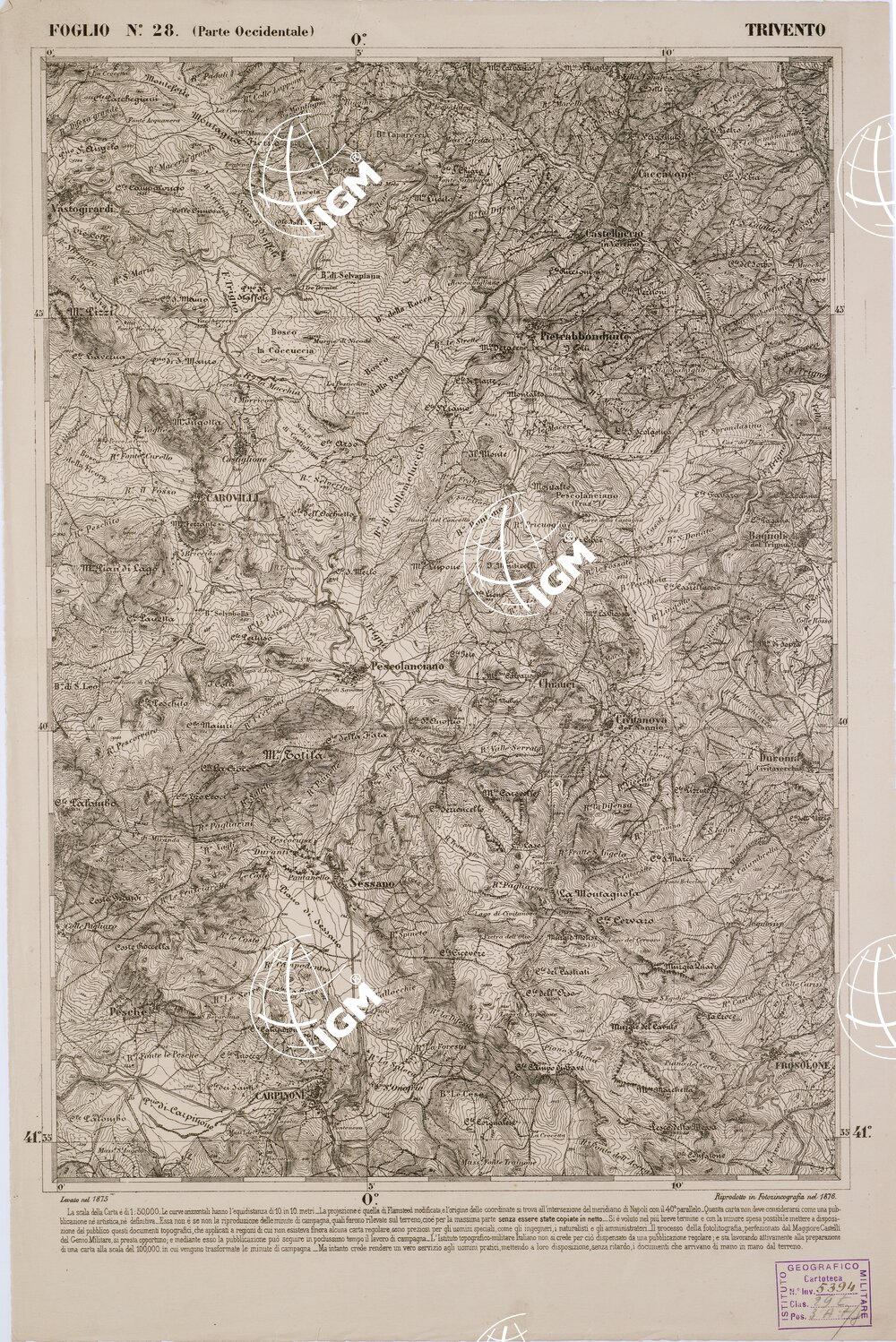 CARTA DELL' ITALIA MERIDIONALE EDITA DALL'ISTITUTO TOPOGRAFICO MILITARE ITALIANO – Foglio 28 parte occidentale – Trivento