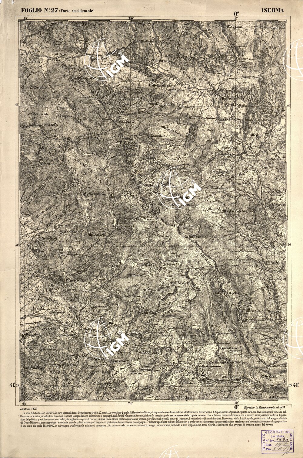 CARTA DELL’ ITALIA MERIDIONALE EDITA DALL’ISTITUTO TOPOGRAFICO MILITARE ITALIANO – Foglio 27 parte occidentale – Isernia