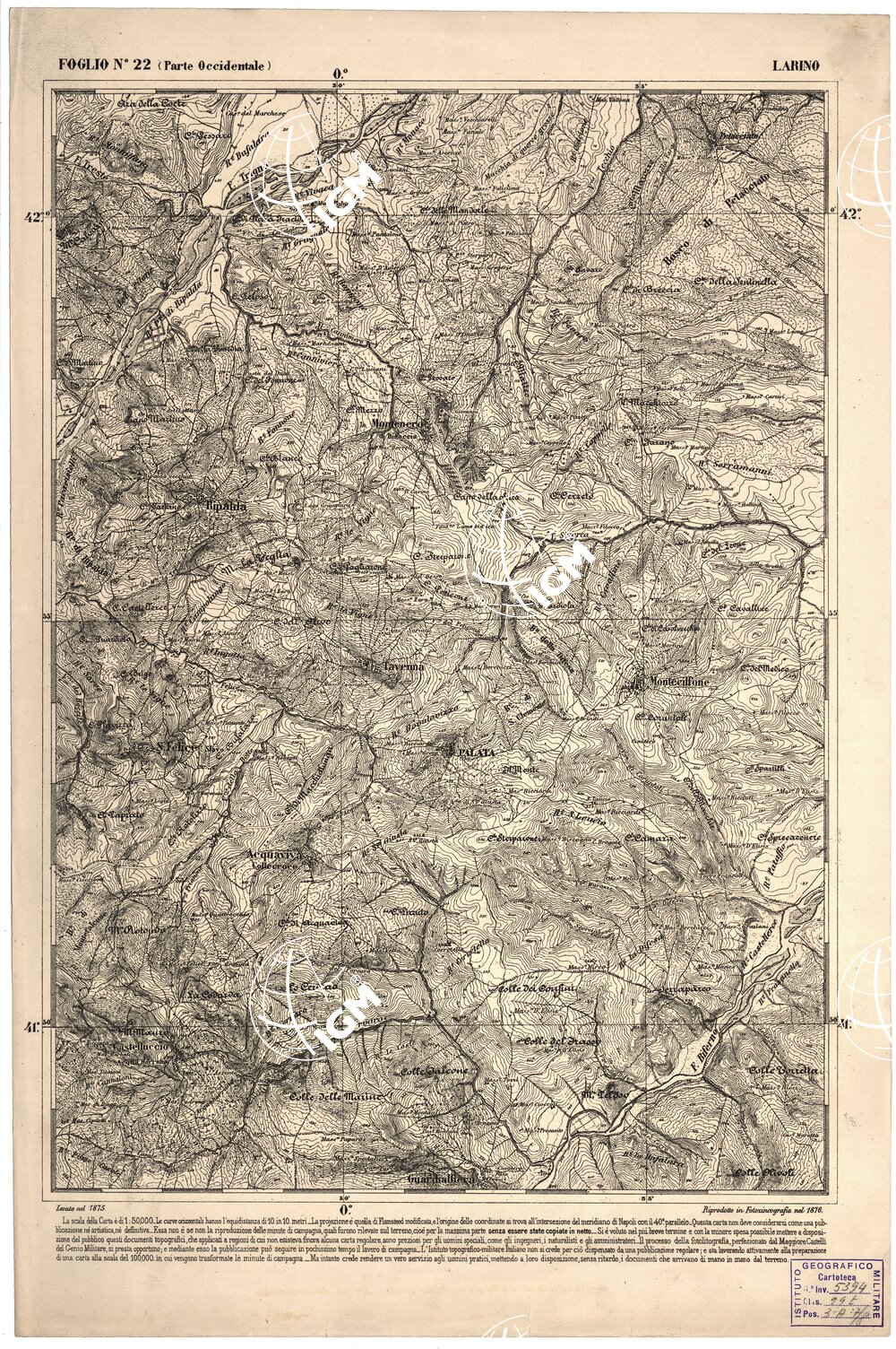 CARTA DELL' ITALIA MERIDIONALE EDITA DALL'ISTITUTO TOPOGRAFICO MILITARE ITALIANO – Foglio 22 parte occidentale – Larino