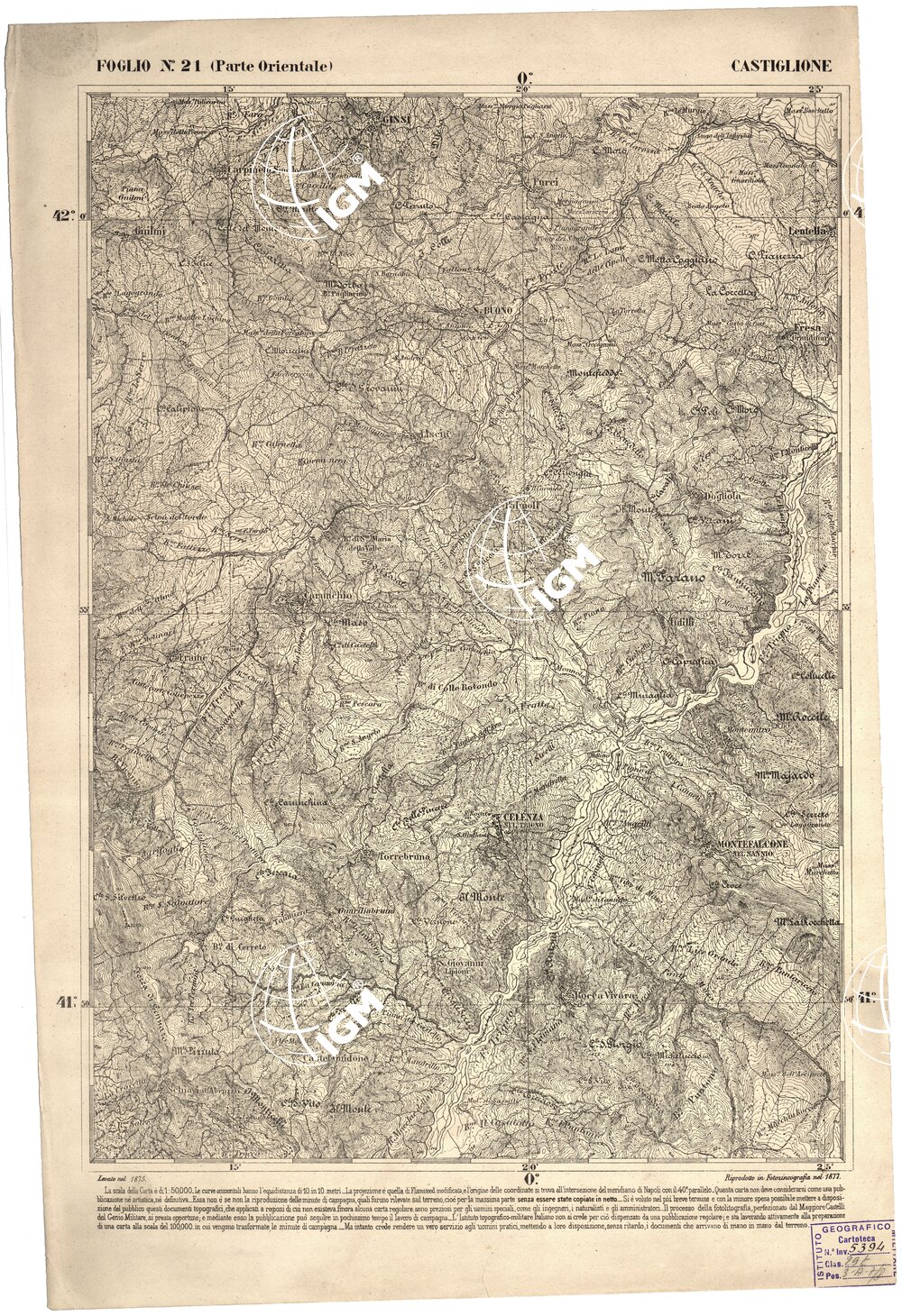 CARTA DELL’ ITALIA MERIDIONALE EDITA DALL’ISTITUTO TOPOGRAFICO MILITARE ITALIANO – Foglio 21 parte orientale – Castiglione
