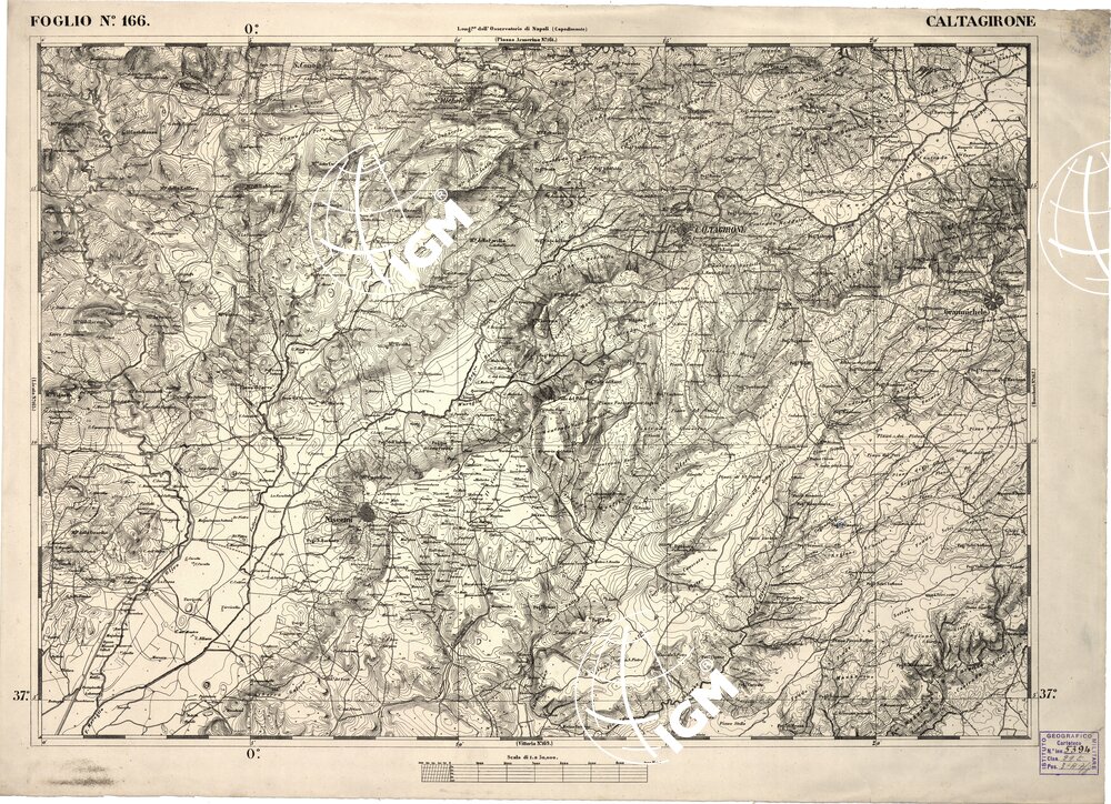 CARTA DELL' ITALIA MERIDIONALE EDITA DALL'ISTITUTO TOPOGRAFICO MILITARE ITALIANO – Foglio 166 – Caltagirone