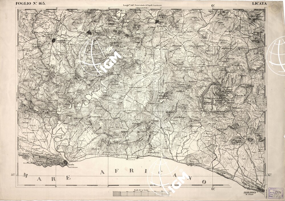 CARTA DELL’ ITALIA MERIDIONALE EDITA DALL’ISTITUTO TOPOGRAFICO MILITARE ITALIANO – Foglio 165 – Licata