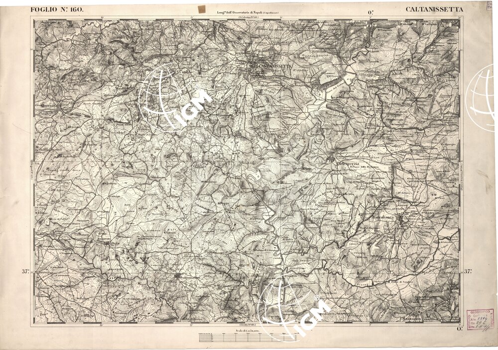 CARTA DELL' ITALIA MERIDIONALE EDITA DALL'ISTITUTO TOPOGRAFICO MILITARE ITALIANO – Foglio 160 – Caltanissetta