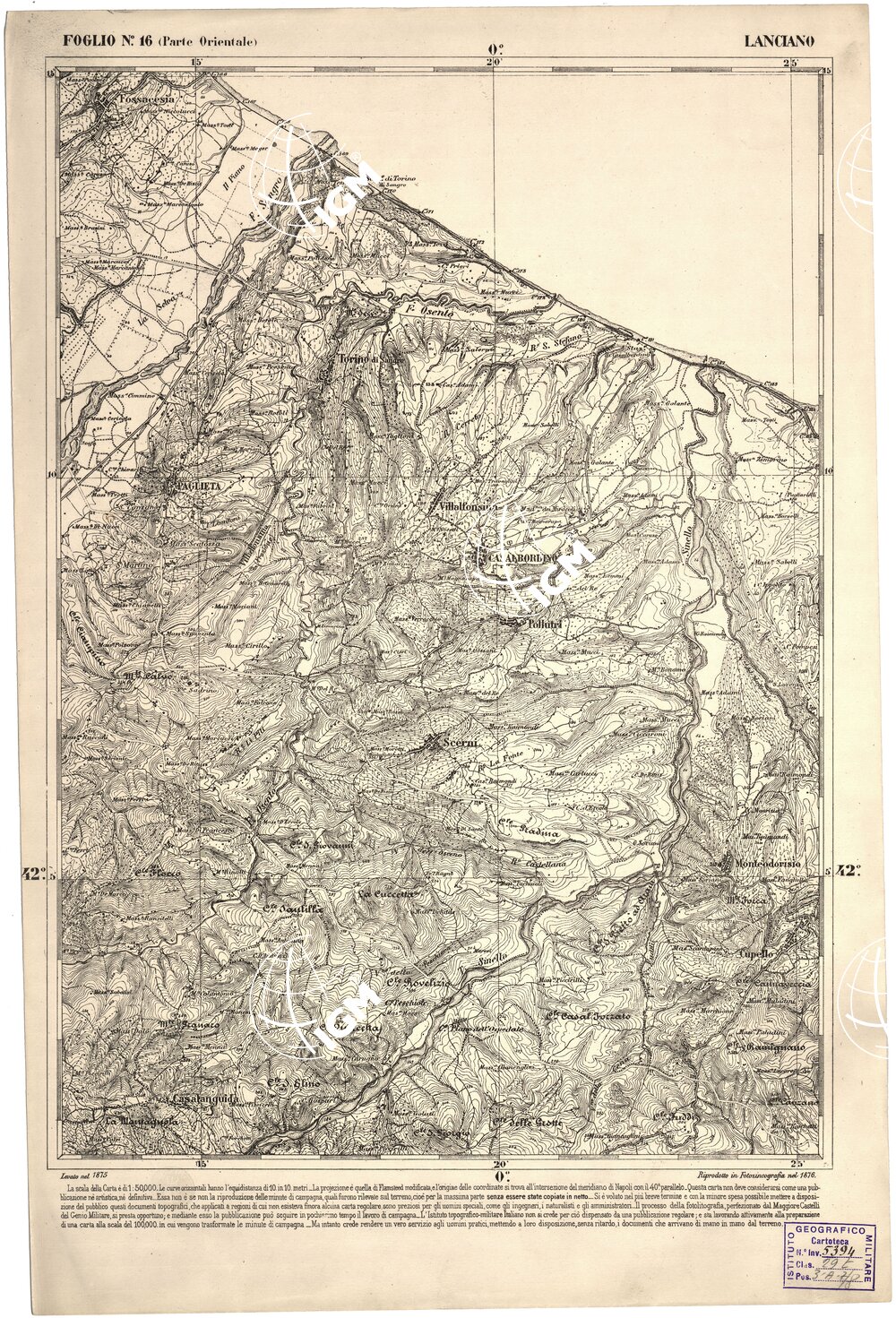 CARTA DELL' ITALIA MERIDIONALE EDITA DALL'ISTITUTO TOPOGRAFICO MILITARE ITALIANO – Foglio 16 parte orientale – Lanciano