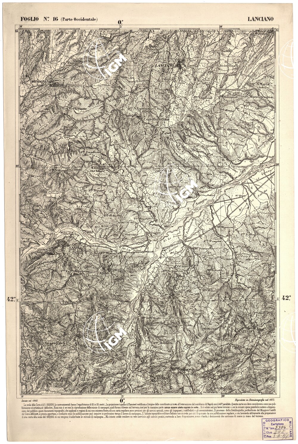 CARTA DELL' ITALIA MERIDIONALE EDITA DALL'ISTITUTO TOPOGRAFICO MILITARE ITALIANO – Foglio 16 parte occidentale – Lanciano
