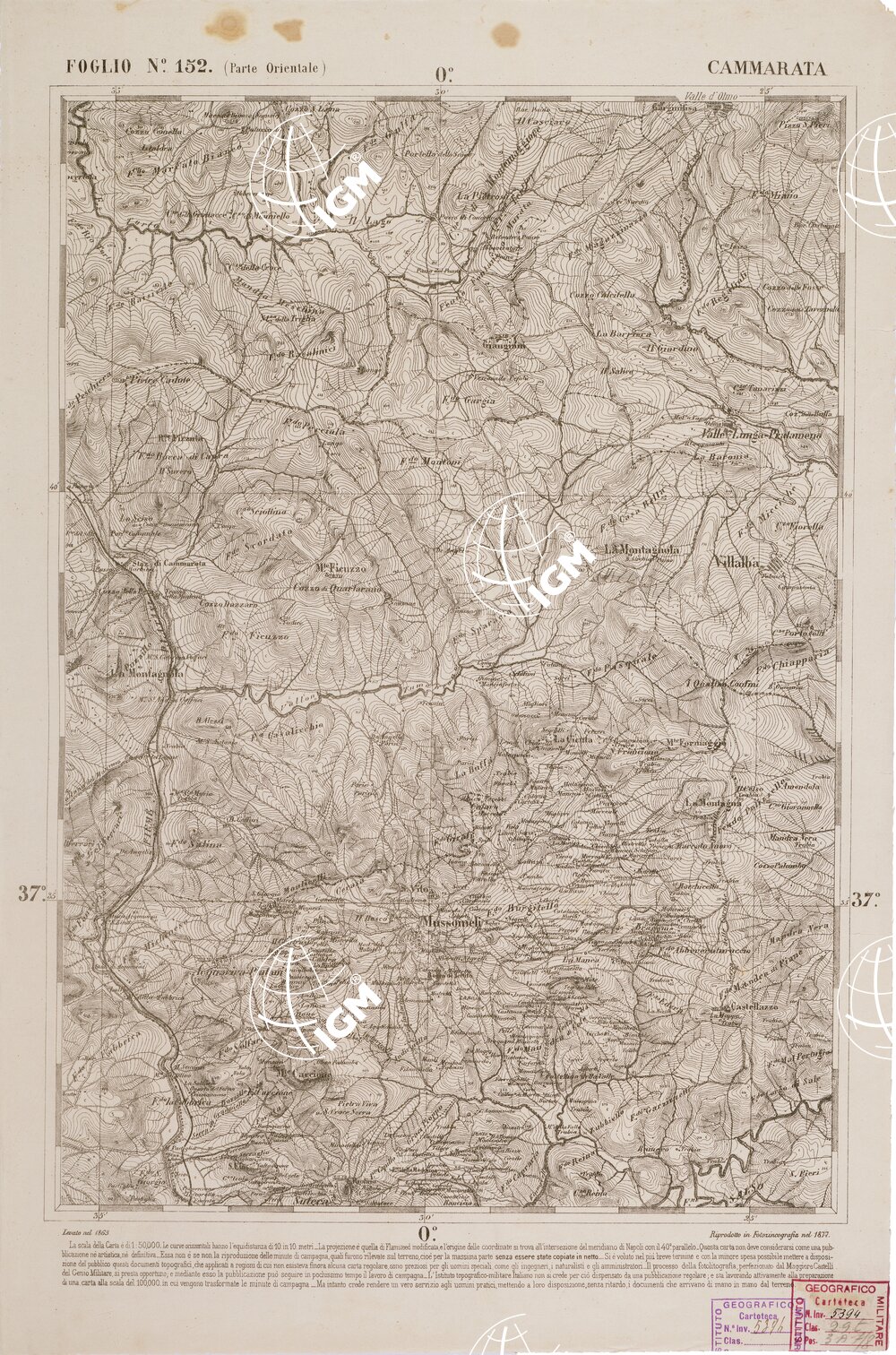 CARTA DELL' ITALIA MERIDIONALE EDITA DALL'ISTITUTO TOPOGRAFICO MILITARE ITALIANO – Foglio 152 parte orientale – Cammarata