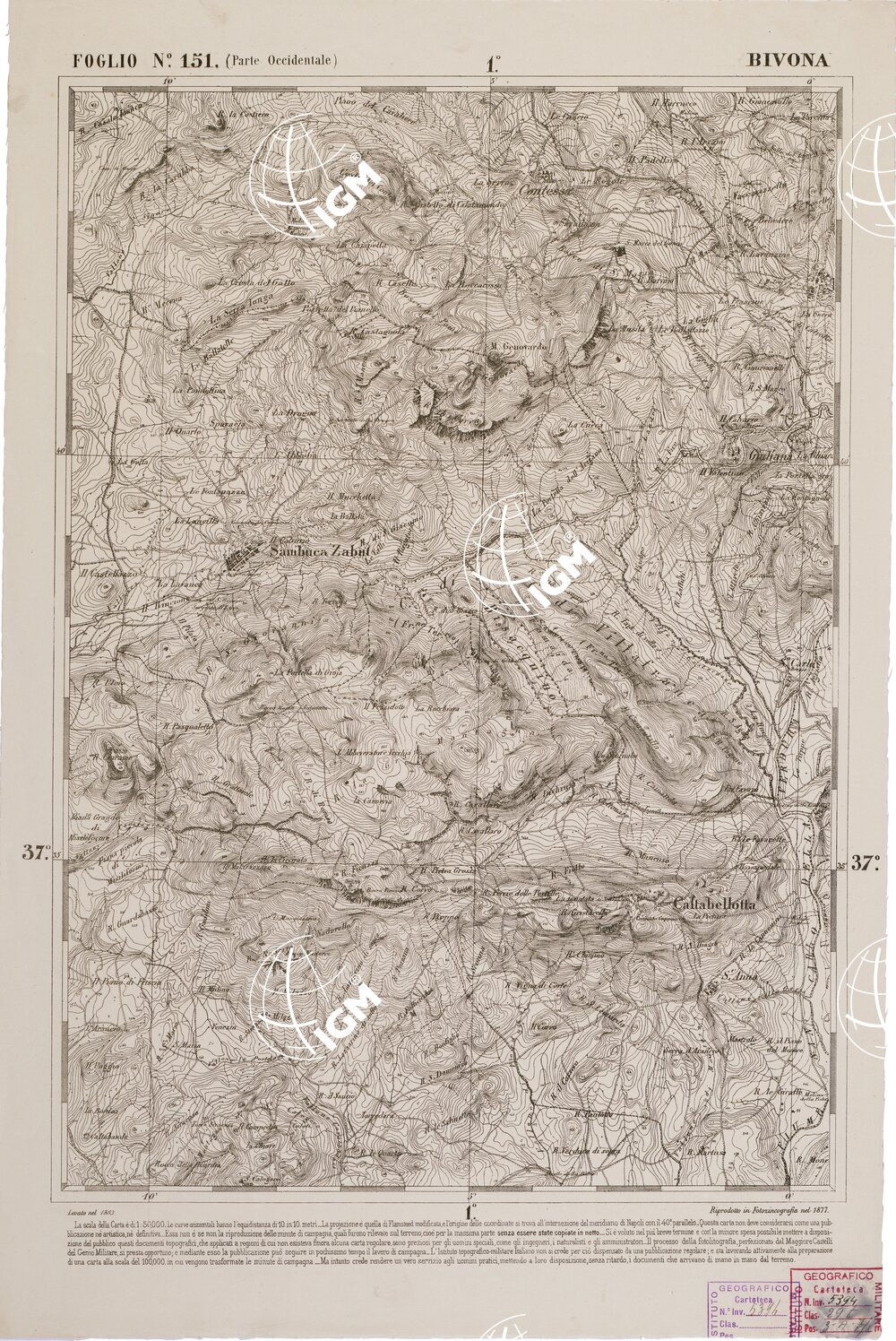CARTA DELL' ITALIA MERIDIONALE EDITA DALL'ISTITUTO TOPOGRAFICO MILITARE ITALIANO – Foglio 151 parte occidentale – Bivona
