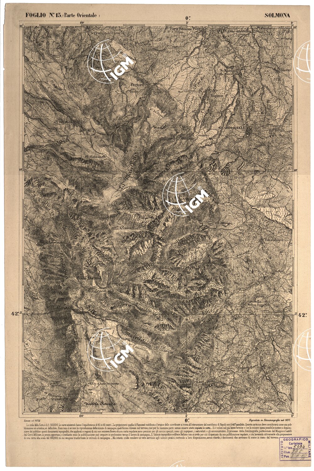 CARTA DELL' ITALIA MERIDIONALE EDITA DALL'ISTITUTO TOPOGRAFICO MILITARE ITALIANO – Foglio 15 parte orientale – Solmona
