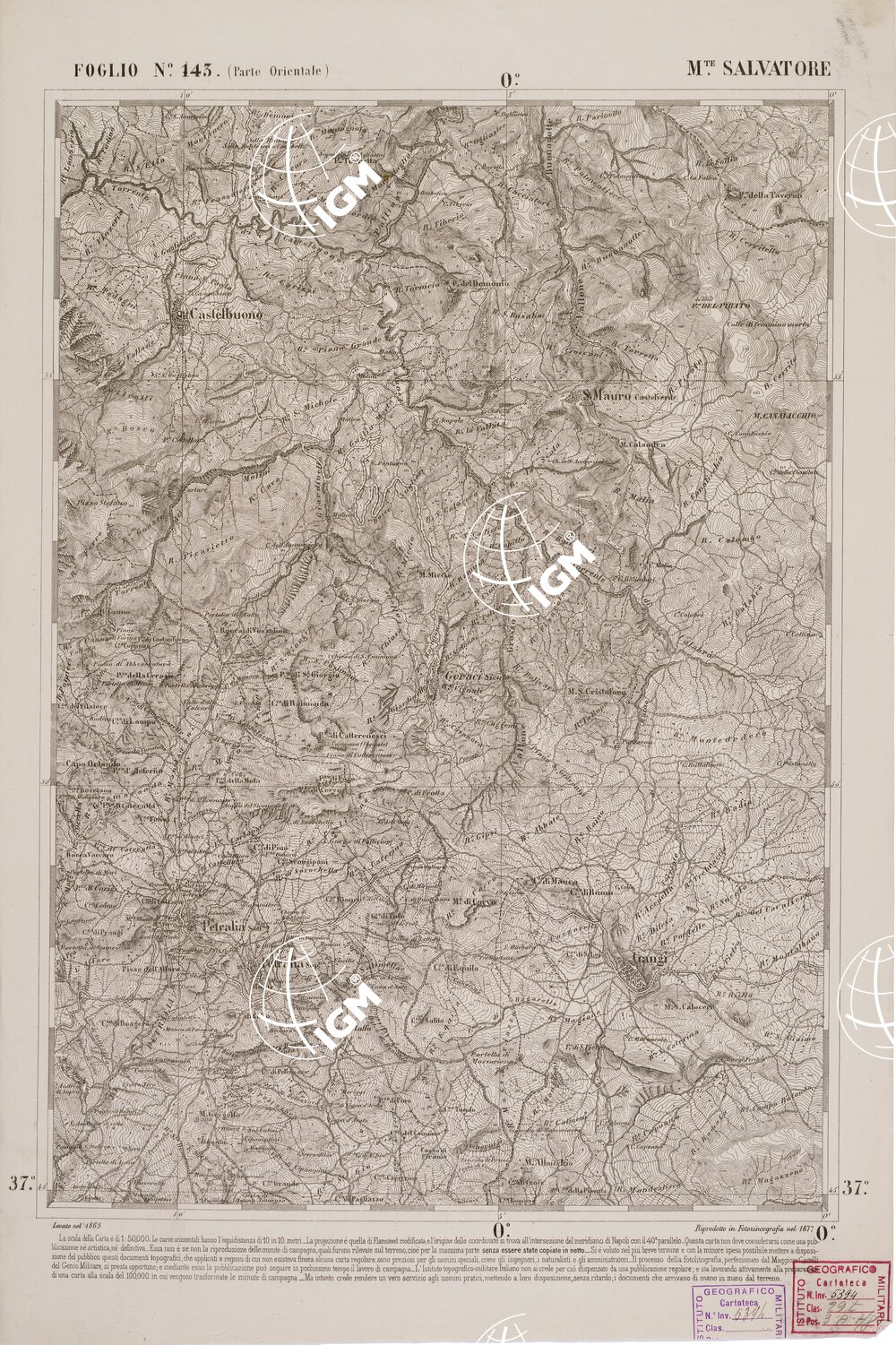 CARTA DELL' ITALIA MERIDIONALE EDITA DALL'ISTITUTO TOPOGRAFICO MILITARE ITALIANO – Foglio 143 parte orientale – M.te Salvatore