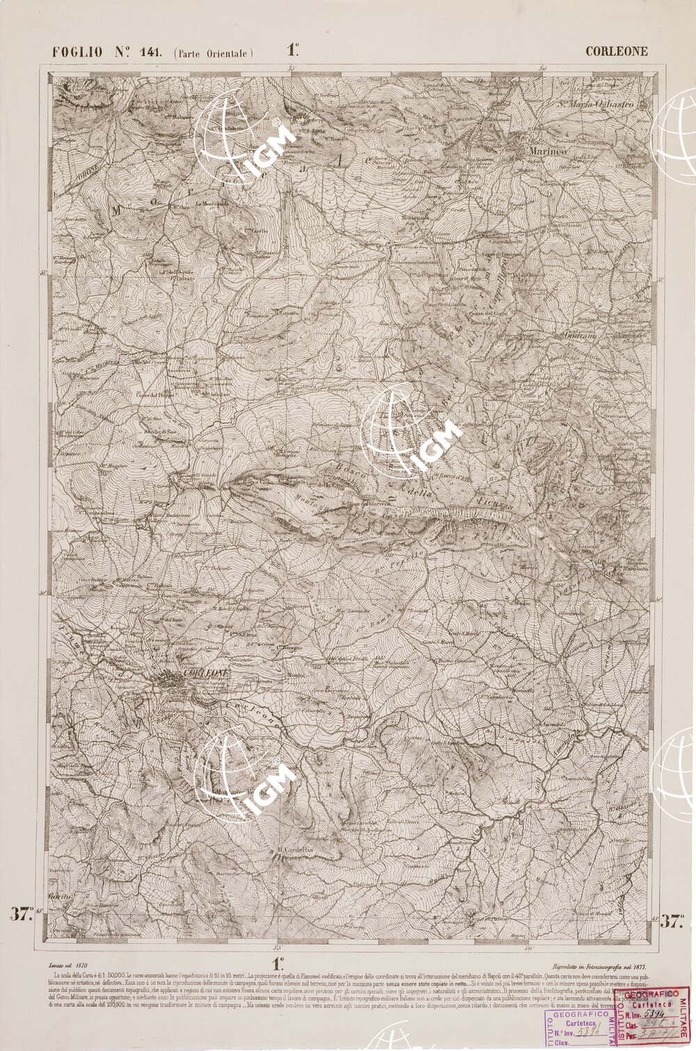 CARTA DELL' ITALIA MERIDIONALE EDITA DALL'ISTITUTO TOPOGRAFICO MILITARE ITALIANO – Foglio 141 parte orientale – Corleone
