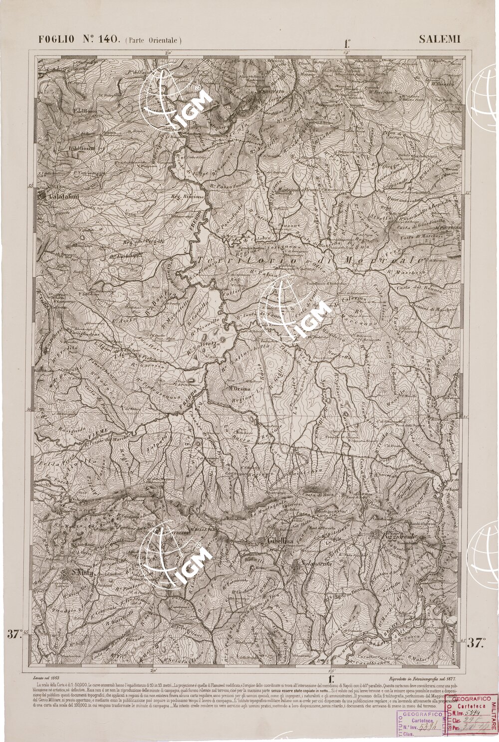 CARTA DELL' ITALIA MERIDIONALE EDITA DALL'ISTITUTO TOPOGRAFICO MILITARE ITALIANO – Foglio 140 parte orientale – Salemi
