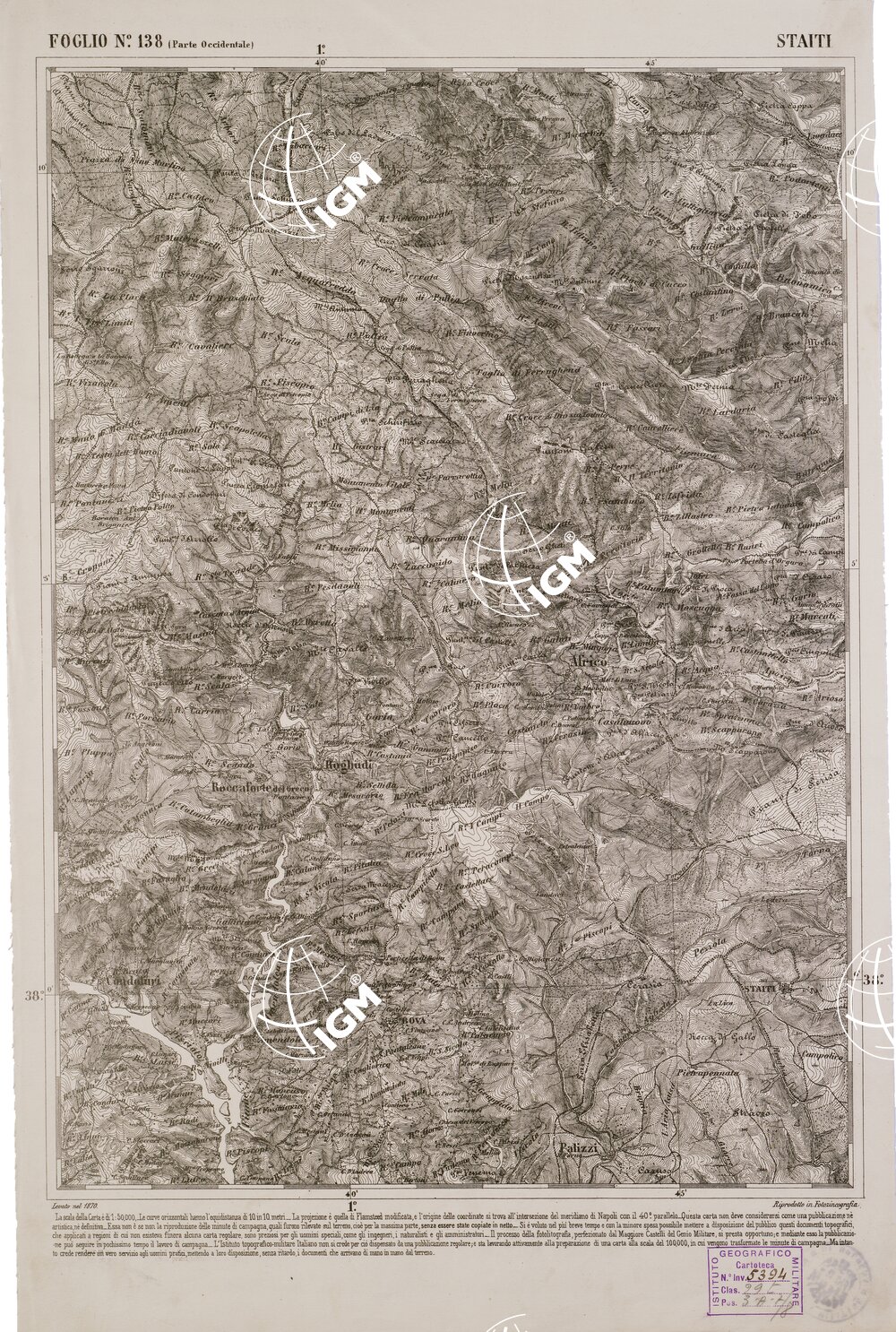 CARTA DELL' ITALIA MERIDIONALE EDITA DALL'ISTITUTO TOPOGRAFICO MILITARE ITALIANO – Foglio 138 parte occidentale – Staiti