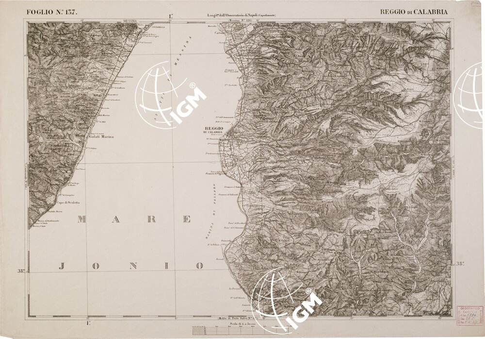 CARTA DELL’ ITALIA MERIDIONALE EDITA DALL’ISTITUTO TOPOGRAFICO MILITARE ITALIANO – Foglio 137 – Reggio di Calabria