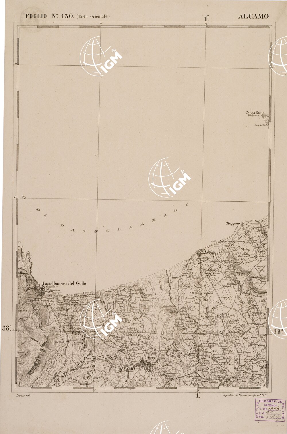 CARTA DELL' ITALIA MERIDIONALE EDITA DALL'ISTITUTO TOPOGRAFICO MILITARE ITALIANO – Foglio 130 parte orientale – Alcamo