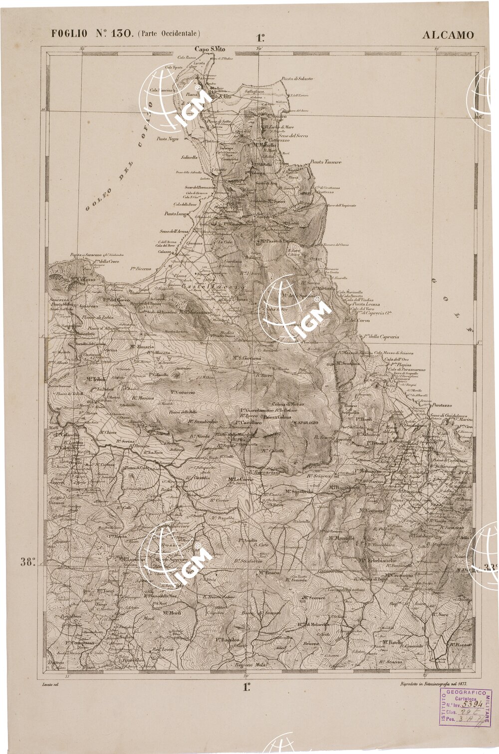 CARTA DELL' ITALIA MERIDIONALE EDITA DALL'ISTITUTO TOPOGRAFICO MILITARE ITALIANO – Foglio 130 parte occidentale – Alcamo