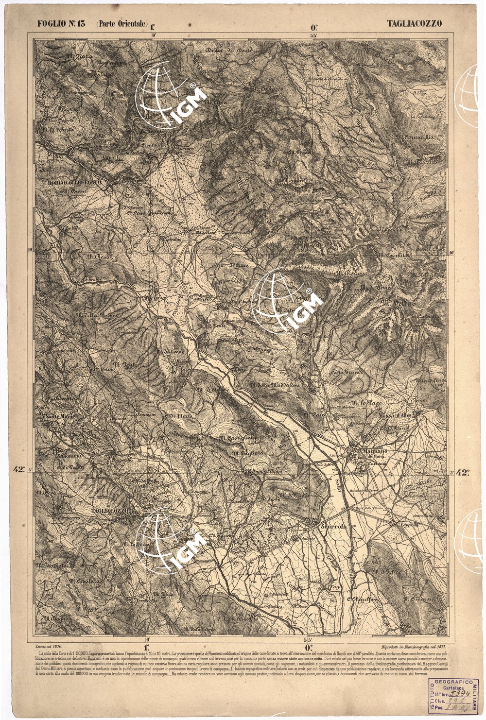 CARTA DELL’ ITALIA MERIDIONALE EDITA DALL’ISTITUTO TOPOGRAFICO MILITARE ITALIANO – Foglio 13 parte orientale – Tagliacozzo