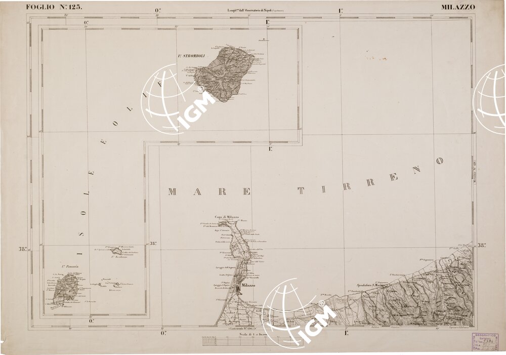CARTA DELL' ITALIA MERIDIONALE EDITA DALL'ISTITUTO TOPOGRAFICO MILITARE ITALIANO – Foglio 125 – Milazzo