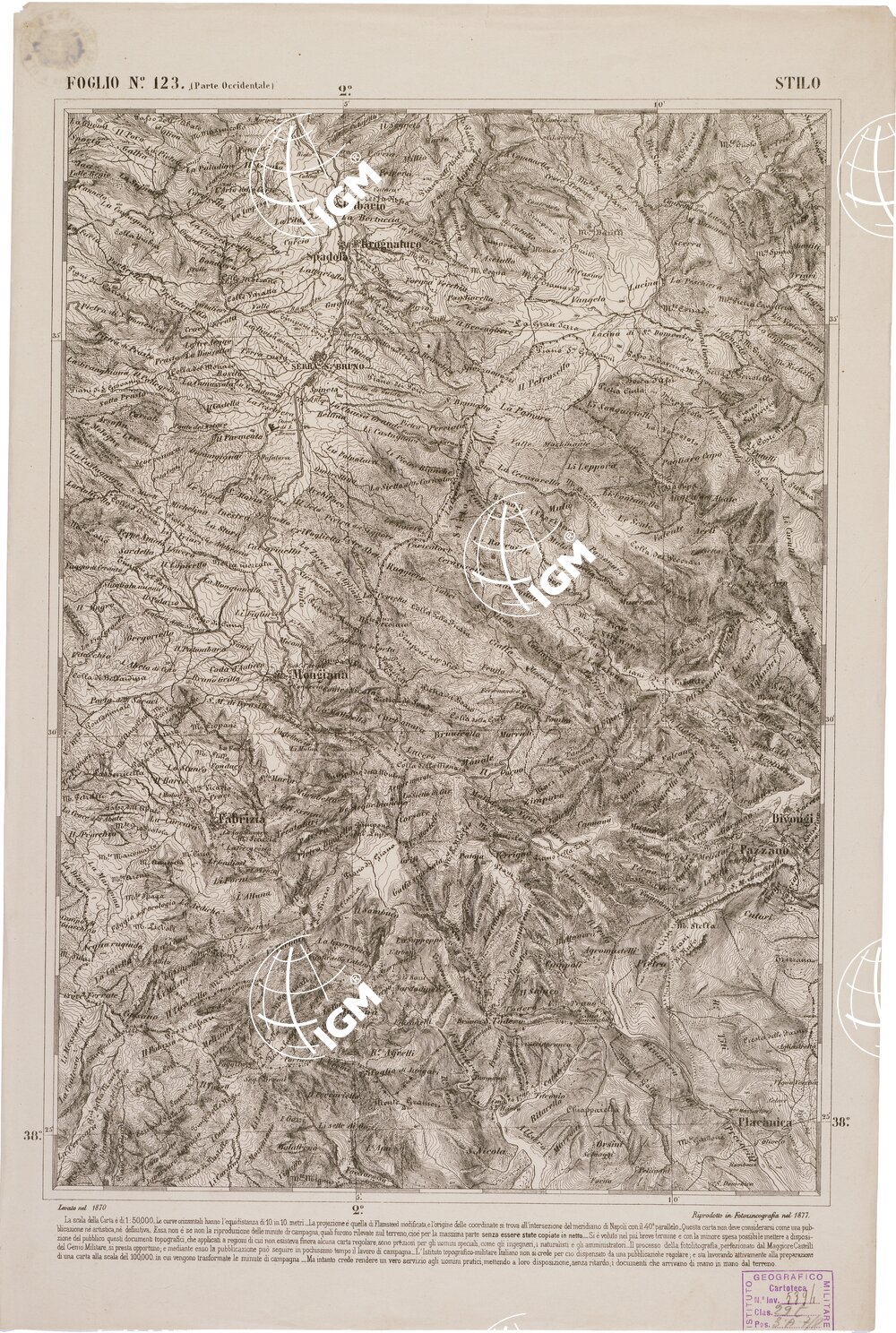 CARTA DELL' ITALIA MERIDIONALE EDITA DALL'ISTITUTO TOPOGRAFICO MILITARE ITALIANO – Foglio 123 parte occidentale – Stilo