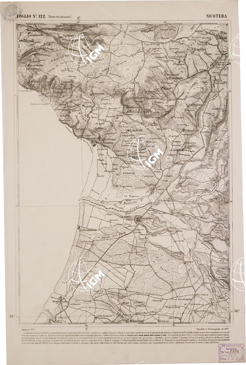 CARTA DELL' ITALIA MERIDIONALE EDITA DALL'ISTITUTO TOPOGRAFICO MILITARE ITALIANO – Foglio 122 parte occidentale – Nicotera