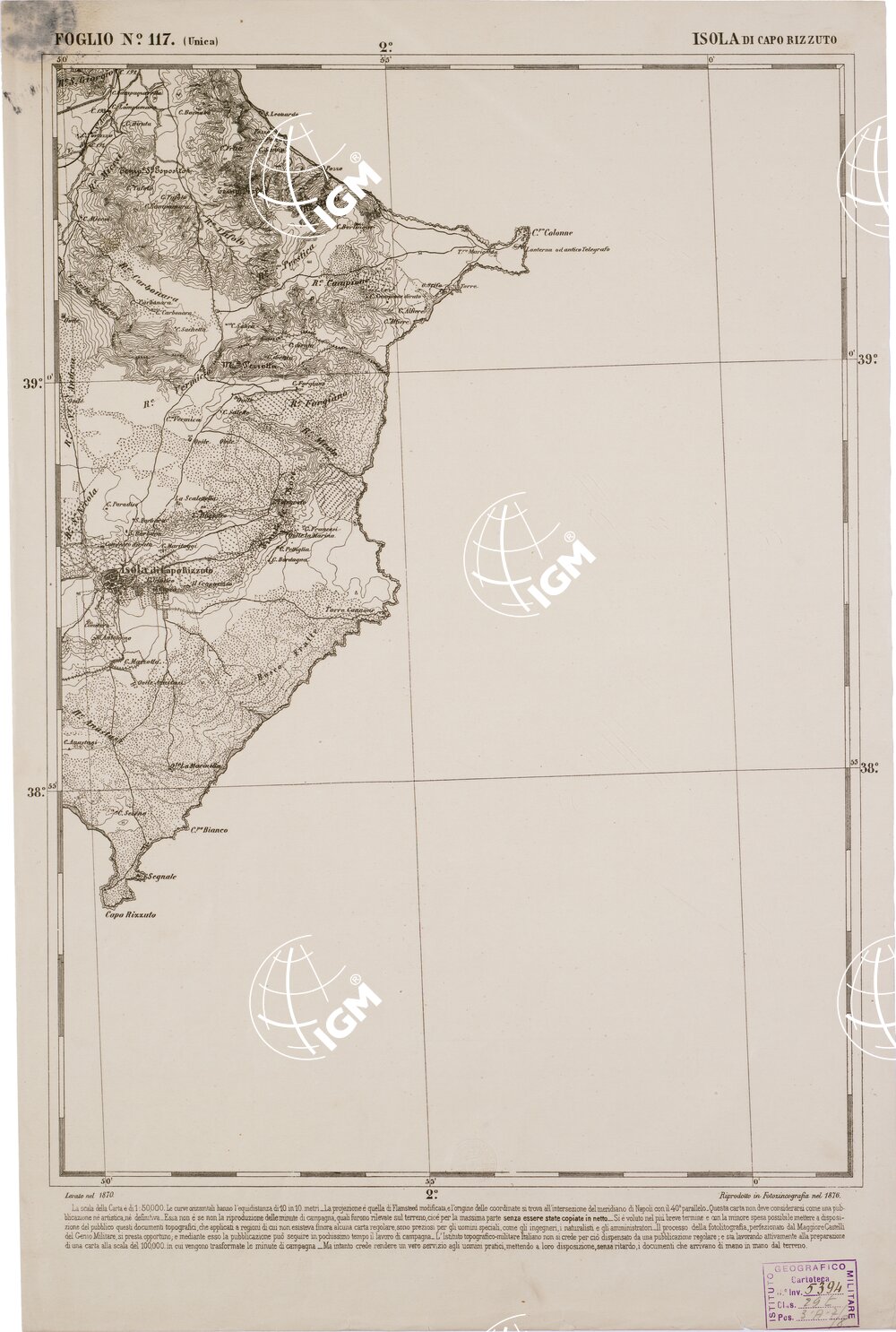 CARTA DELL' ITALIA MERIDIONALE EDITA DALL'ISTITUTO TOPOGRAFICO MILITARE ITALIANO – Foglio 117 – Isola di Capo Rizzuto