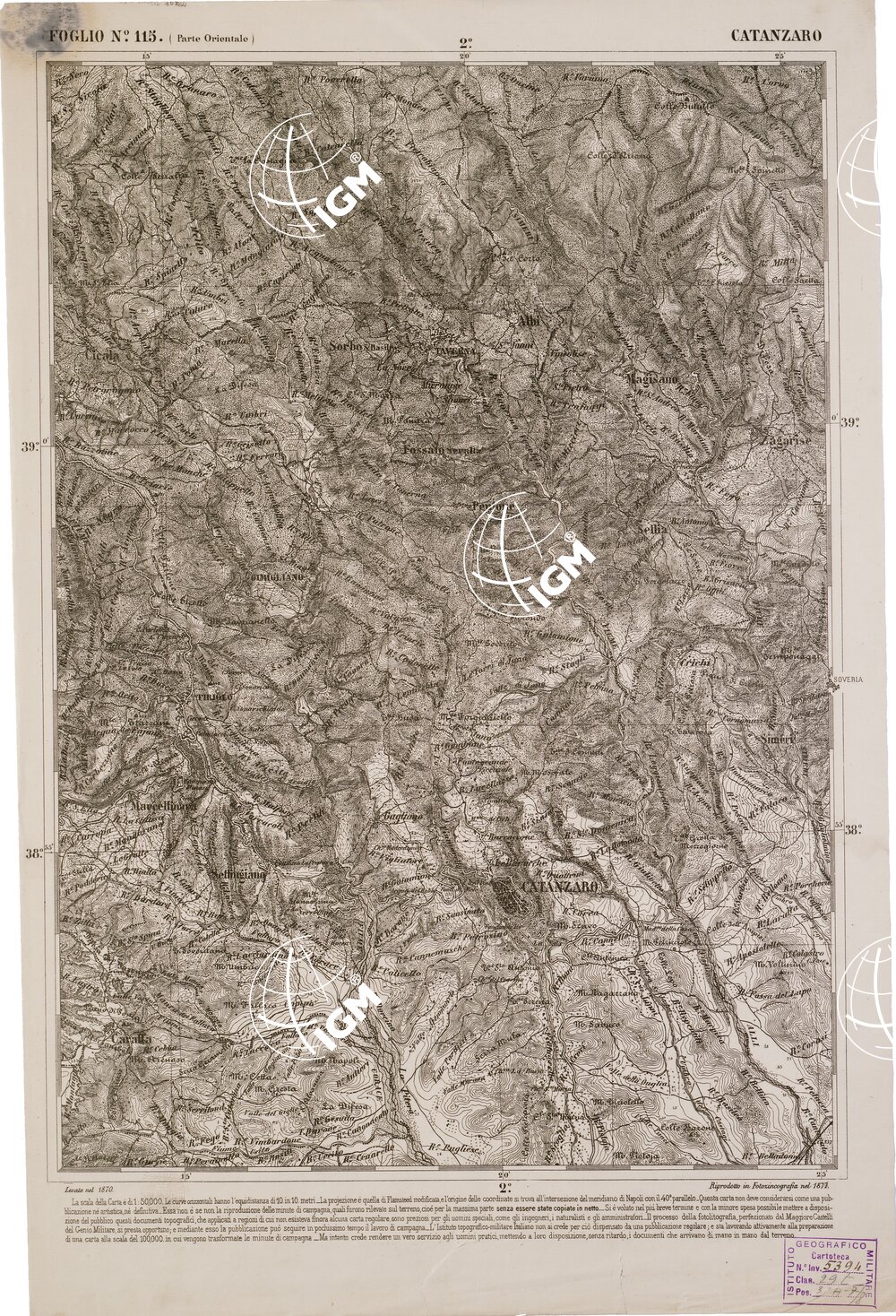 CARTA DELL' ITALIA MERIDIONALE EDITA DALL'ISTITUTO TOPOGRAFICO MILITARE ITALIANO – Foglio 115 parte orientale – Catanzaro