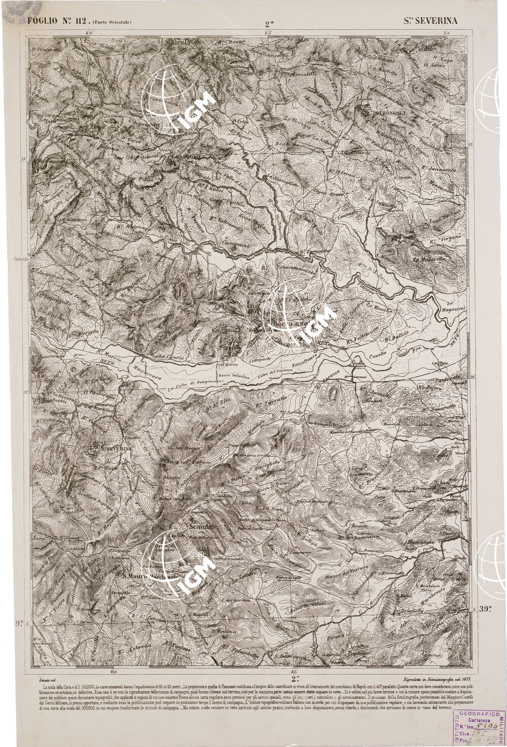 CARTA DELL' ITALIA MERIDIONALE EDITA DALL'ISTITUTO TOPOGRAFICO MILITARE ITALIANO – Foglio 112 parte orientale – S.ta Severina