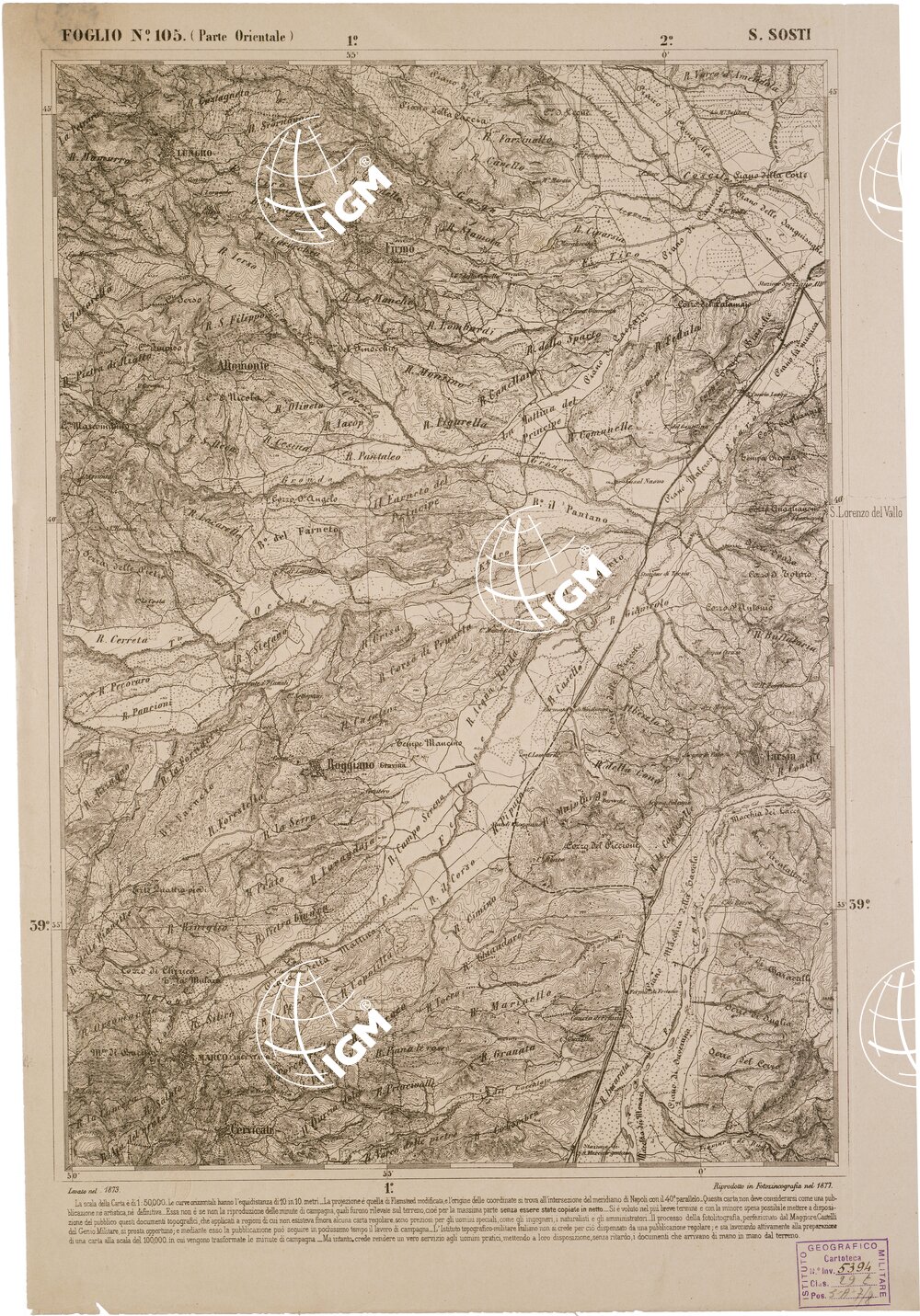 CARTA DELL' ITALIA MERIDIONALE EDITA DALL'ISTITUTO TOPOGRAFICO MILITARE ITALIANO – Foglio 105 parte orientale – S. Sosti