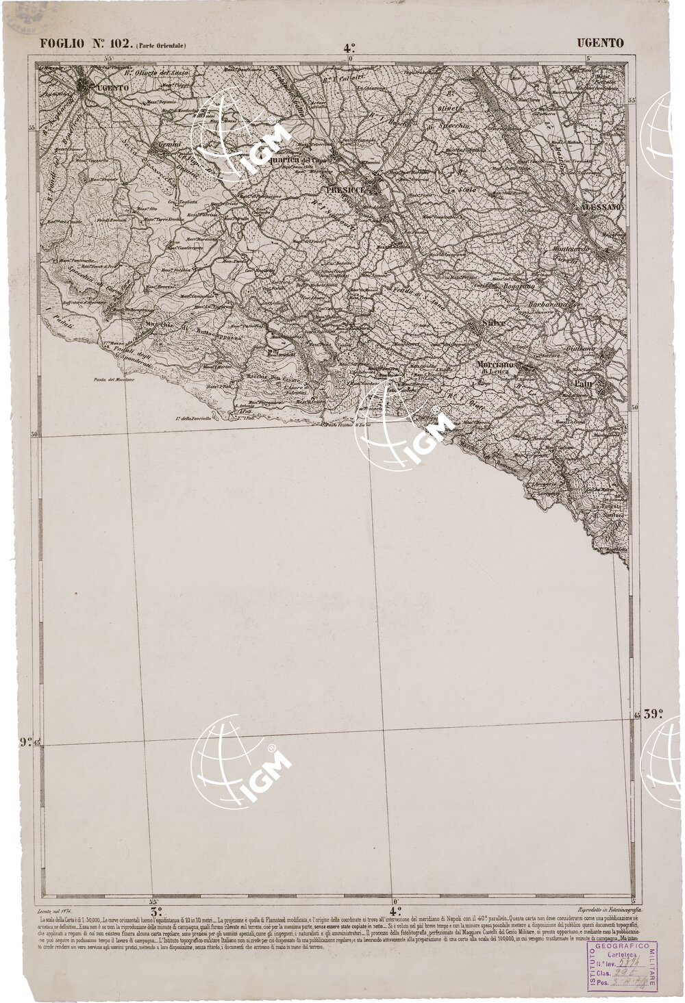 CARTA DELL' ITALIA MERIDIONALE EDITA DALL'ISTITUTO TOPOGRAFICO MILITARE ITALIANO – Foglio 102 parte orientale – Ugento