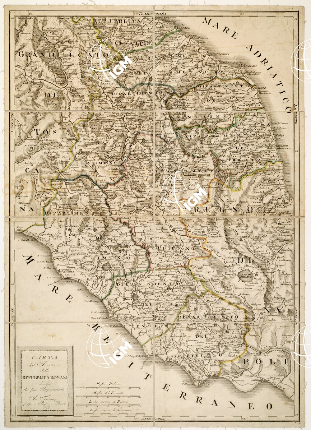CARTA DEL TERRITORIO DELLA REPUBBLICA ROMANA DIVISA NEI SUOI DIPARTIMENTI. IN FIRENZE PRESSO I PAGNI, E BARDI (s.d.).