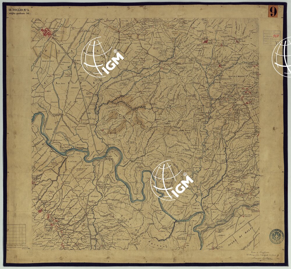 Sono 167 tavolette montate su tela o seta, copiate e messe in netto all’Officio Topografico di Napoli su le levate eseguite dal 1834 al 1860 per la formazione della Carta del Reame di Napoli alla scala di 1:80.000. L’esecuzione di questa carta venne decretata nel 1814: essa fu però iniziata, dati i movimenti politici di quell’epoca, soltanto nel 1833. Queste tavolette si riferiscono ai fogli 1, 5, 8, 9, 12, 13, 17-19, 28, 29, 33 della suddetta carta la quale doveva essere disegnata ed incisa su rame a bulino in fogli rettangolari con orografia a tratteggio e curve di livello tracciate alla equidistanza di 10 passi (m. 18,52) o di 52 passi (m. 92,60). Di essa peraltro furono pubblicati solamente cinque fogli, cioè: Napoli, Caserta, Gaeta, Leonessa, Cittaducale, tra il 1861 e 1870. L’I.G.M. conserva i rami dei primi tre di questi fogli. La carta all’80.000, pregevolissima per valore artistico e scientifico, venne giudicata superiore alle altre produzioni cartografiche contemporanee non solo italiane, ma europee (cfr. Mori A., La cartografia ufficiale in Italia e l’I.G.M. 1922, pag.107).