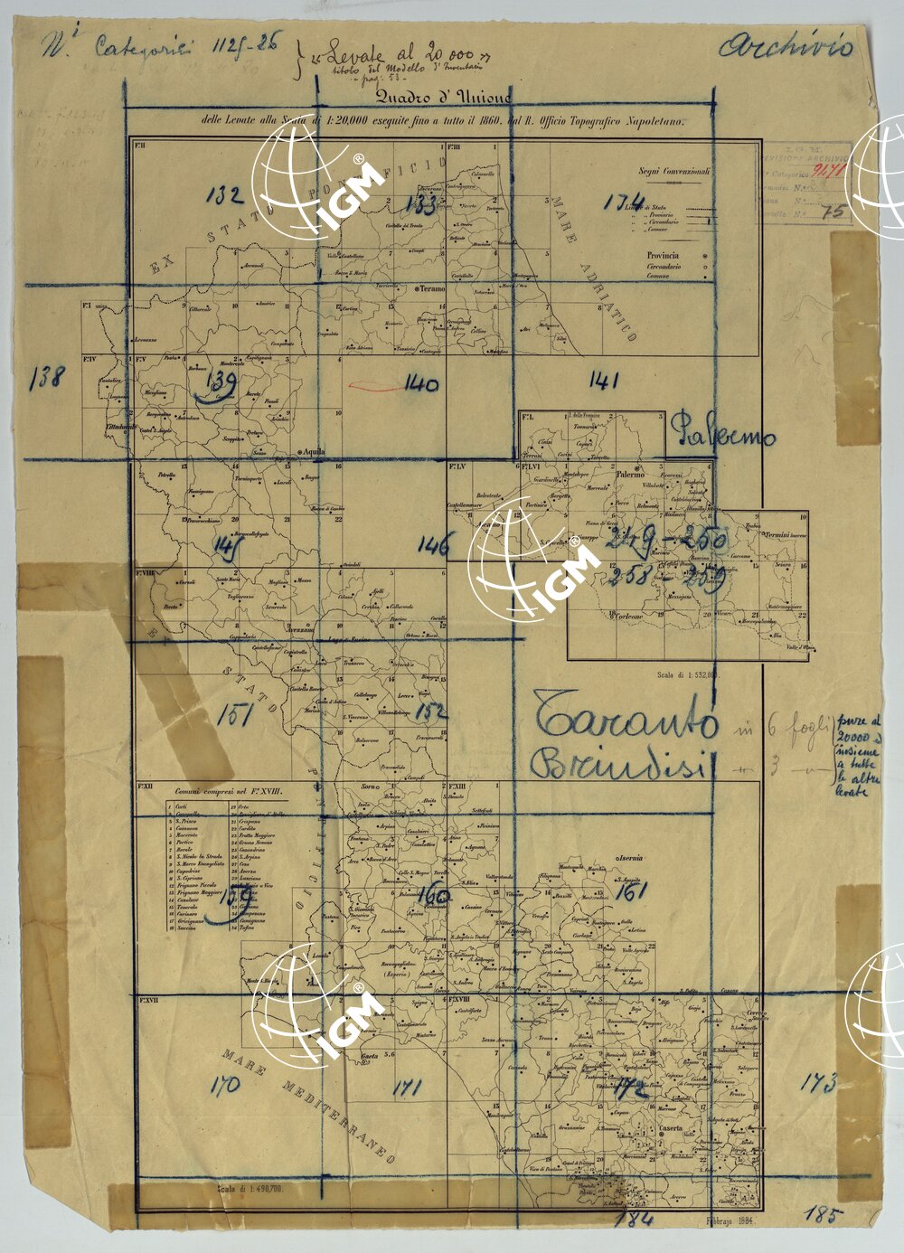 TAVOLETTE AL 20.000 PER LA CARTA DEL REGNO DI NAPOLI – QUADRO D’UNIONE SCRITTO A MANO.