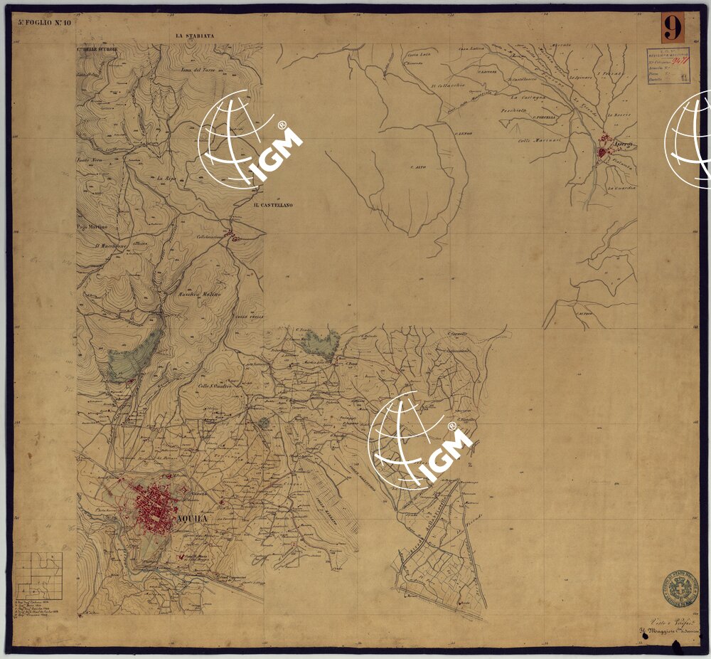 Sono 167 tavolette montate su tela o seta, copiate e messe in netto all’Officio Topografico di Napoli su le levate eseguite dal 1834 al 1860 per la formazione della Carta del Reame di Napoli alla scala di 1:80.000. L’esecuzione di questa carta venne decretata nel 1814: essa fu però iniziata, dati i movimenti politici di quell’epoca, soltanto nel 1833. Queste tavolette si riferiscono ai fogli 1, 5, 8, 9, 12, 13, 17-19, 28, 29, 33 della suddetta carta la quale doveva essere disegnata ed incisa su rame a bulino in fogli rettangolari con orografia a tratteggio e curve di livello tracciate alla equidistanza di 10 passi (m. 18,52) o di 52 passi (m. 92,60). Di essa peraltro furono pubblicati solamente cinque fogli, cioè: Napoli, Caserta, Gaeta, Leonessa, Cittaducale, tra il 1861 e 1870. L’I.G.M. conserva i rami dei primi tre di questi fogli. La carta all’80.000, pregevolissima per valore artistico e scientifico, venne giudicata superiore alle altre produzioni cartografiche contemporanee non solo italiane, ma europee (cfr. Mori A., La cartografia ufficiale in Italia e l’I.G.M. 1922, pag.107).