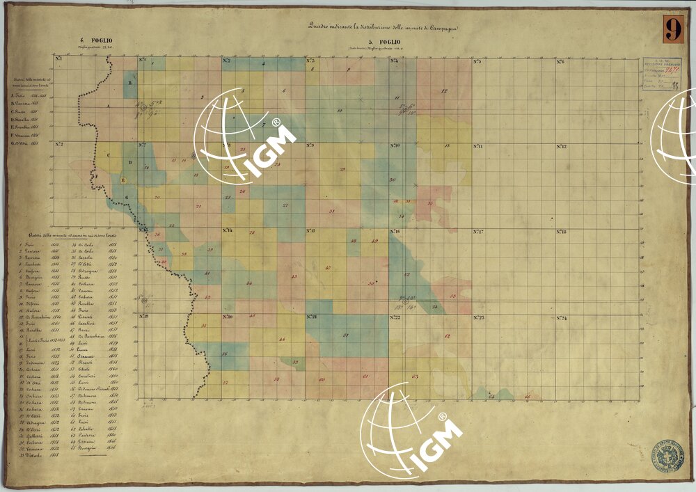 TAVOLETTE AL 20.000 PER LA CARTA DEL REGNO DI NAPOLI – QUADRO INDICANTE LA DISTRIBIZIONE DELLE MINUTE DI CAMPAGNA FOGLIO 4 E 5.